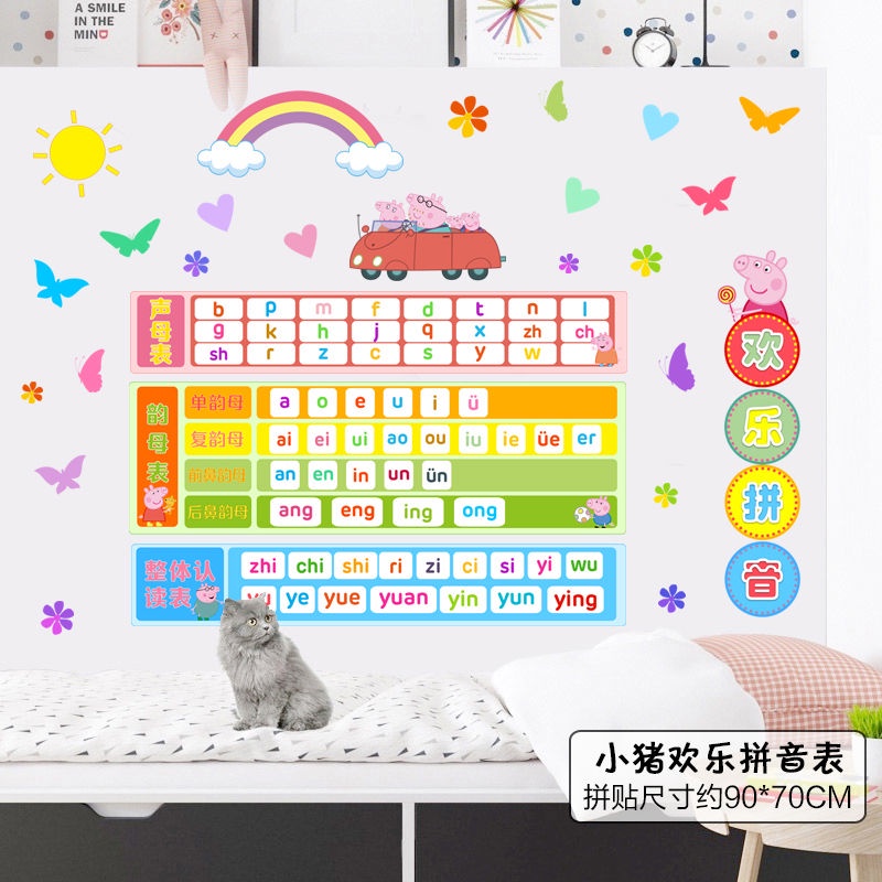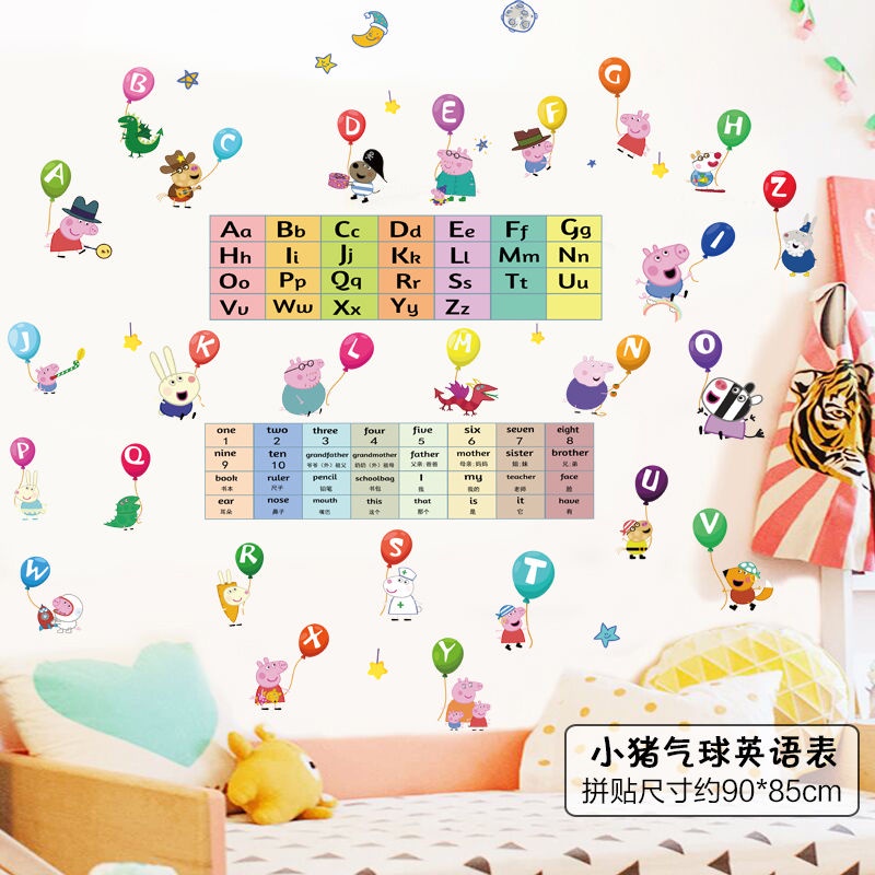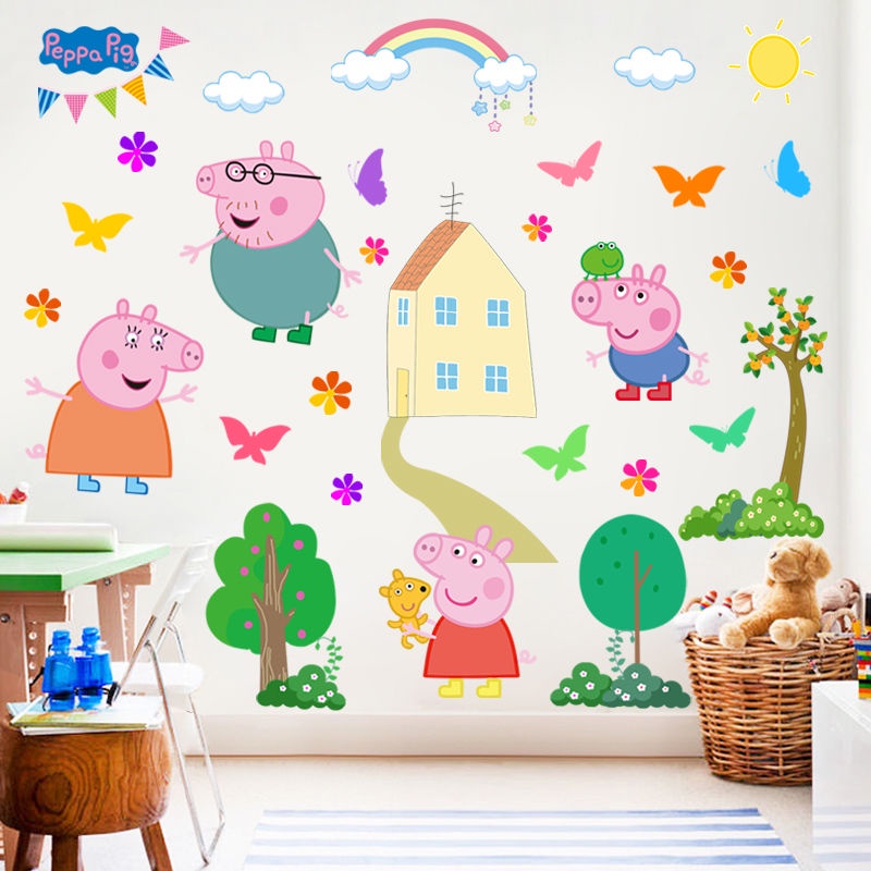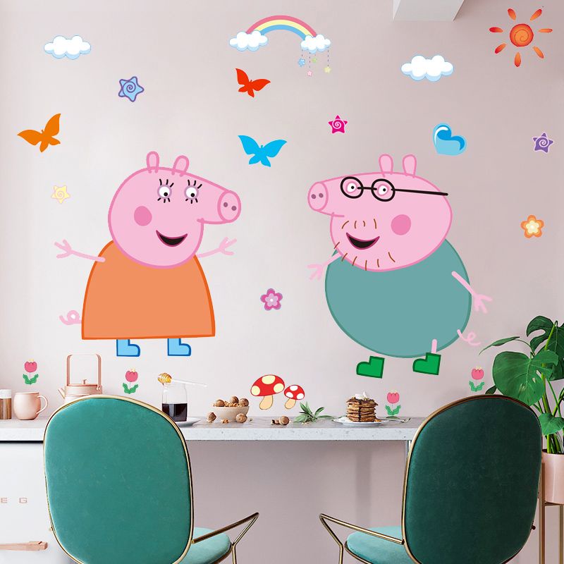 Ready Stock Peppa Pig Peppa Pig Children's Room Wall Decoration Stickers Cute Kindergarten Classroom Layout Cartoon Bedroom Wallpaper Self-Adhesive Cute Stickers Waterproof Antifouling