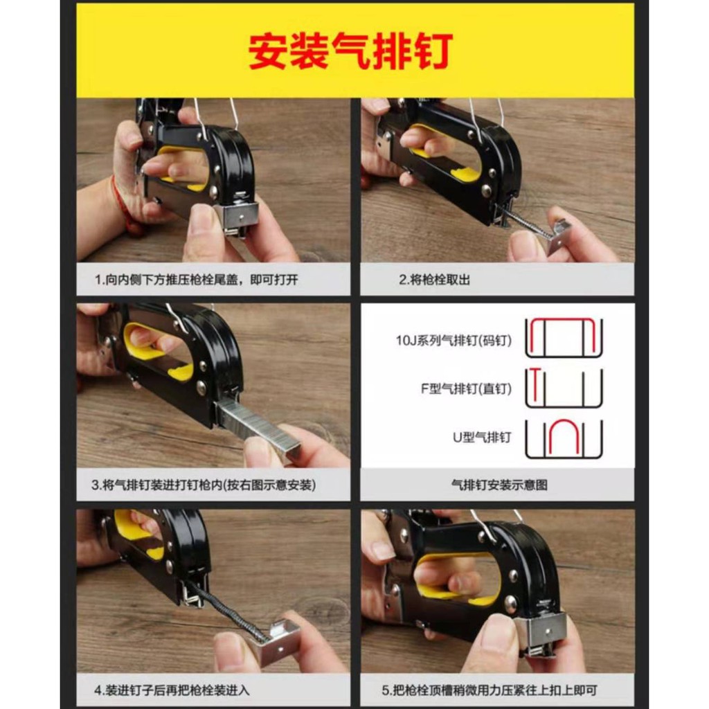 Ready Stock Quality Three Way Hand Tacker Staple Gun Kit Tool Set Stapler Nail Gun For Furniture Carpet Repair