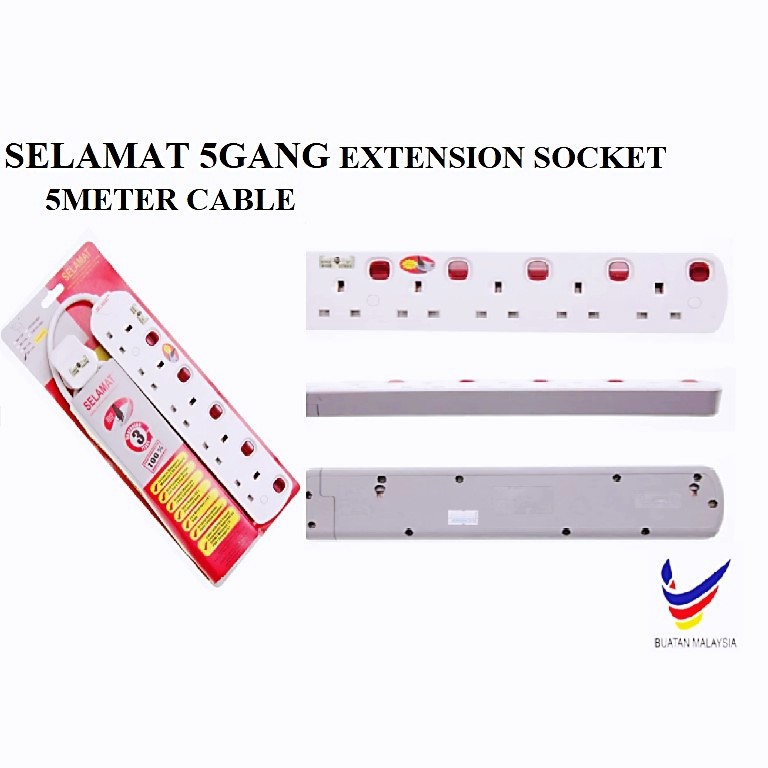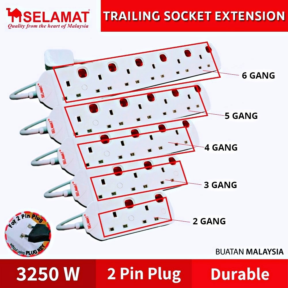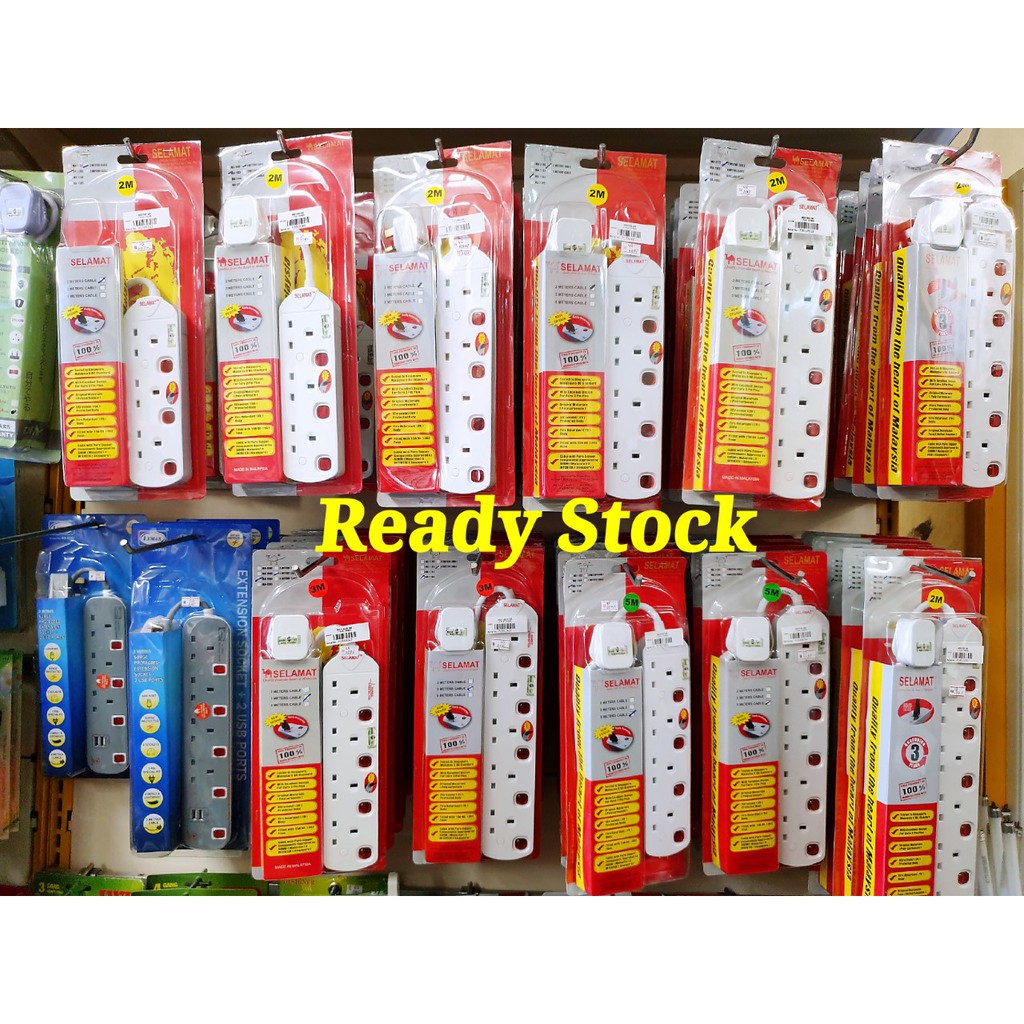 Ready Stock SELAMAT 2G/ 3G/ 4G/ 5G/ 6G Extension Trailing Socket Surge Protector Cable (SIRIM) Max Loading 3250 Watts