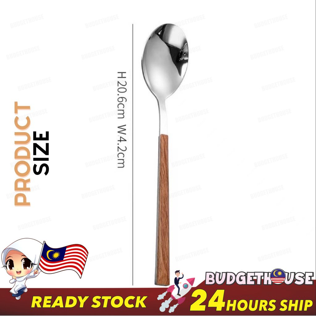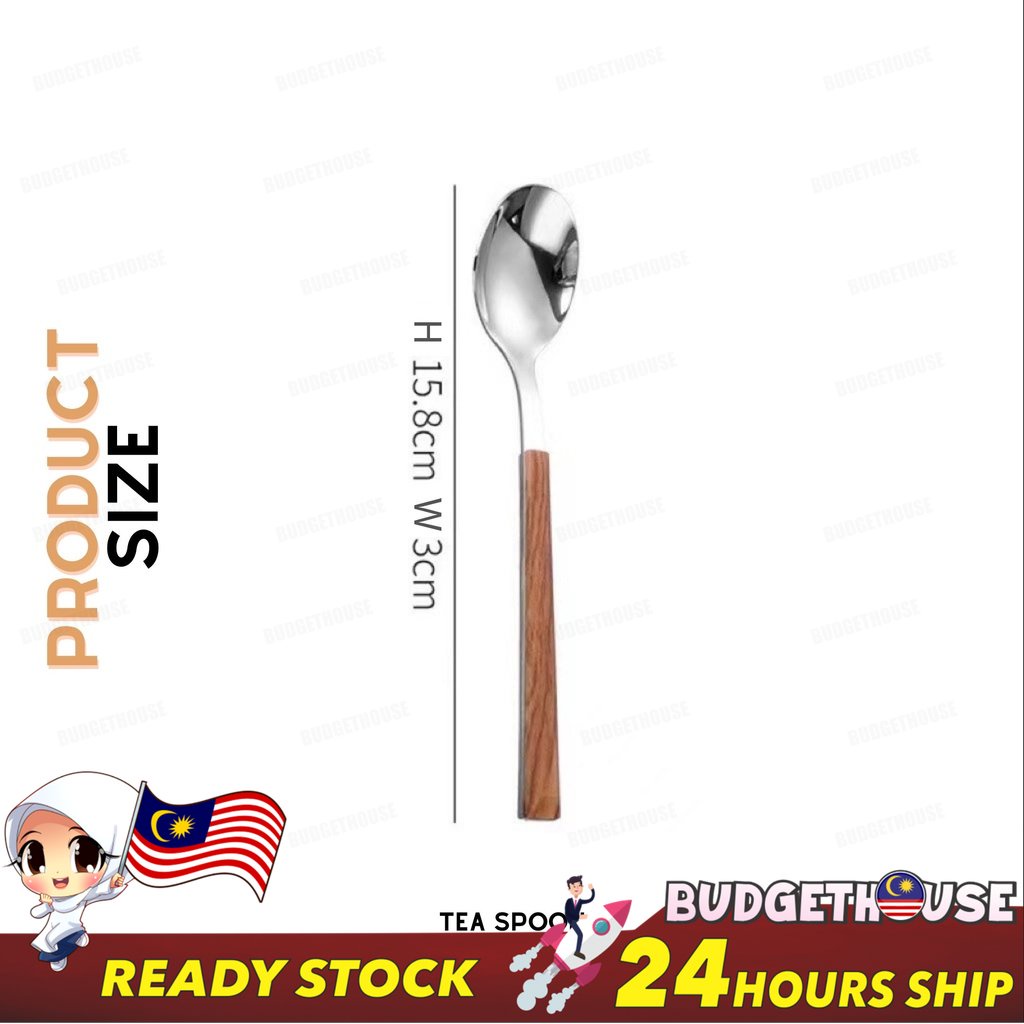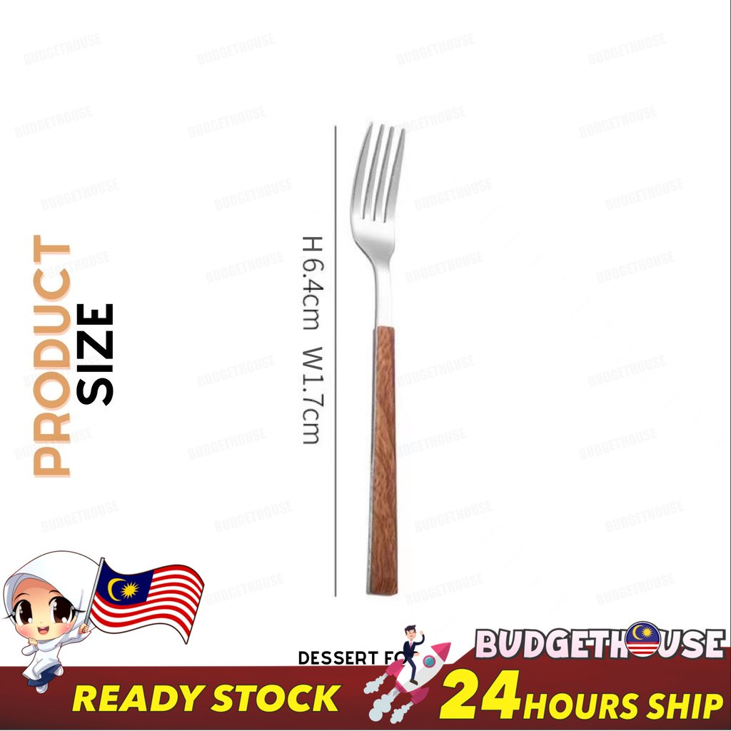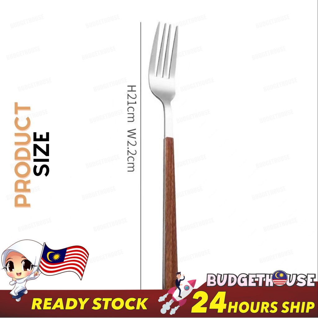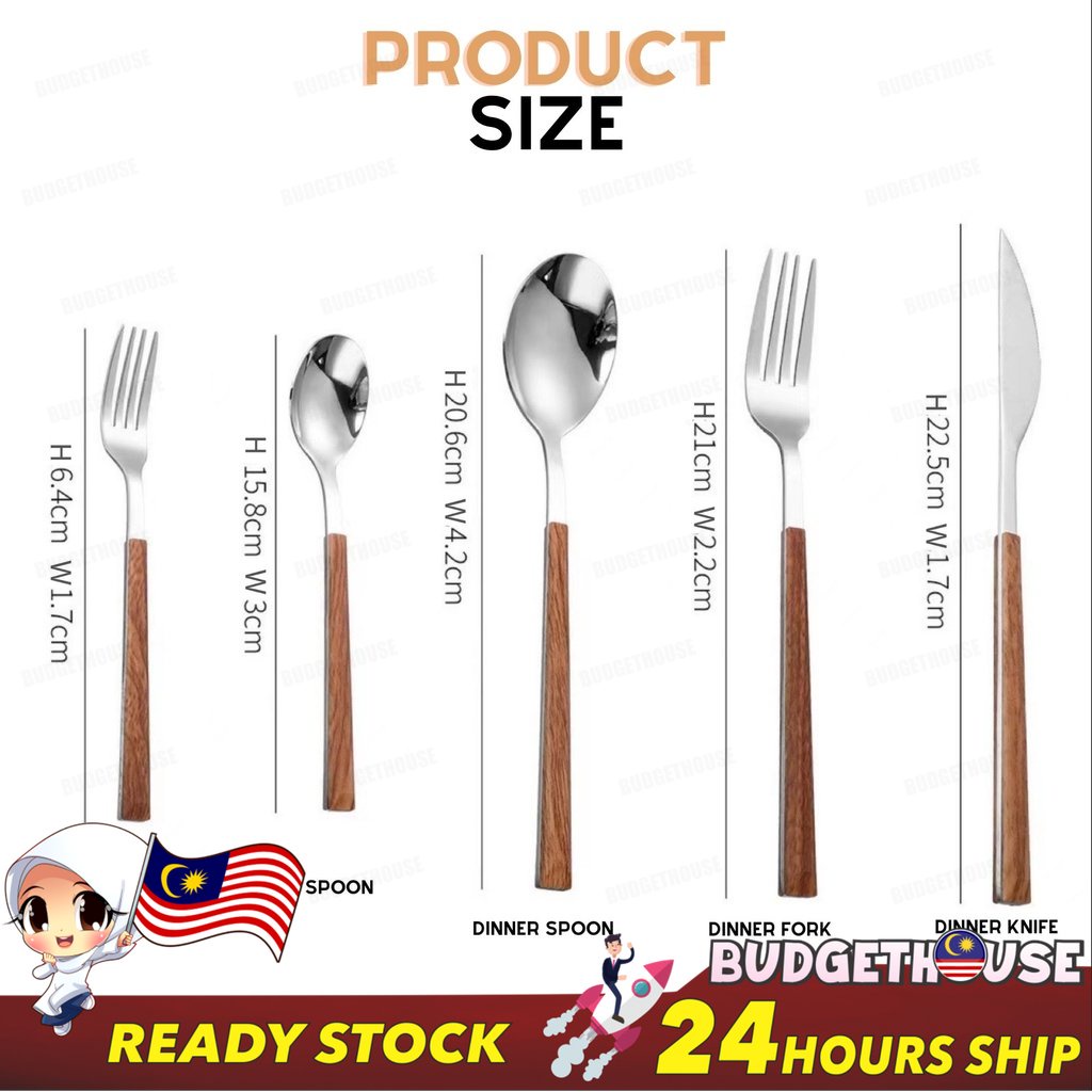 Ready Stock Stainless Steel Cutlery Imitation Wooden Handle Western Steak Knife Spoon Fork Gift Tea Spoon Dessert Fork