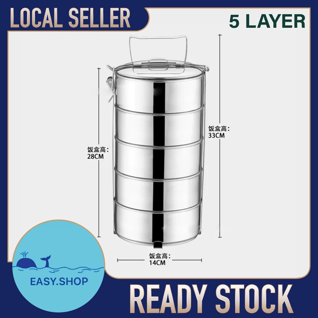 Ready Stock Stainless Steel Multi Layer Food Container/Lunch Box/Food Storage Box 2 Tier/3 Tier/4 Tier/5 Tier 14CM