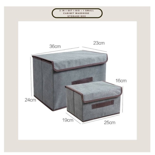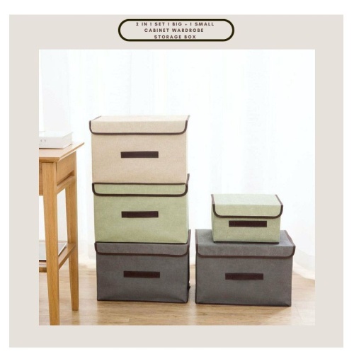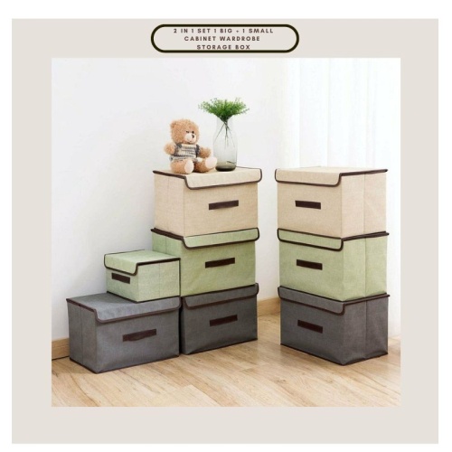 Ready Stock Storage Box Foldable Linen Cloth Storage Box (2 in 1 Set 1 Big + 1 Small) Cabinet Wardrobe Storage Box