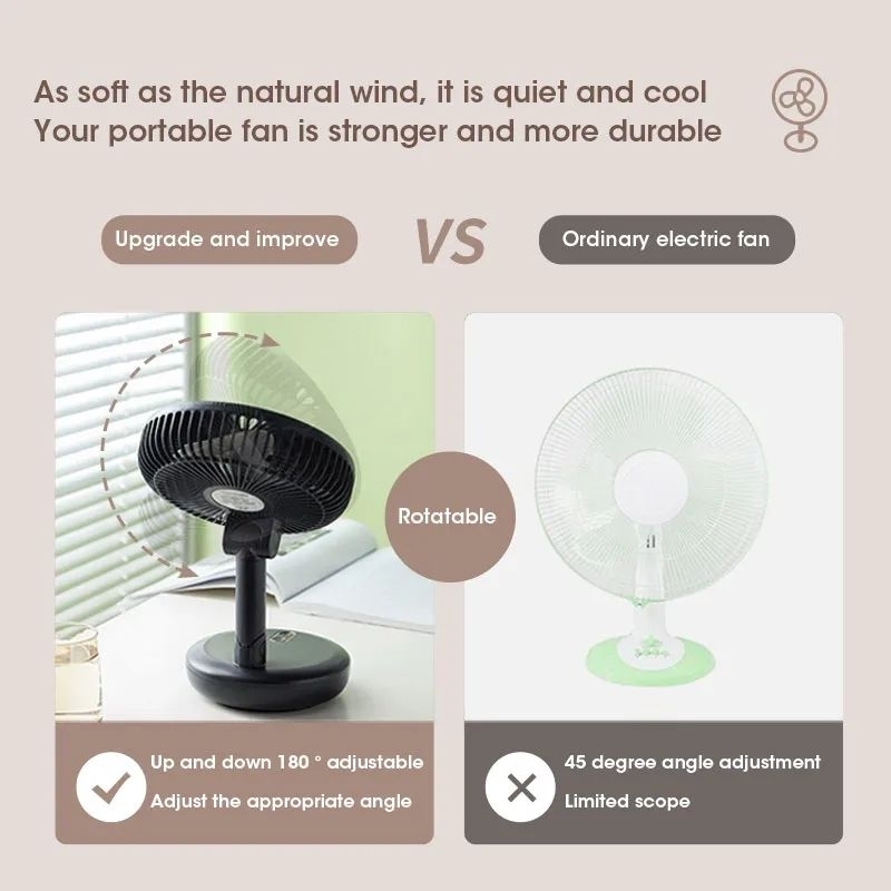 Ready Stock USB Portable Folding Fan With 4800Mah Capacity 3 Speed Turbo Cooling Fan With Rotary Folding Fan