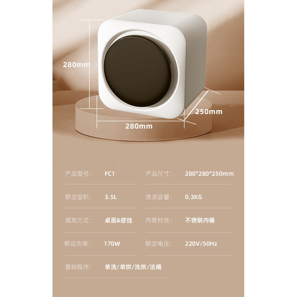 Ready Stock - Wall-Mount Mini Washer Dryer for Underwear 3.5L Stainless Drum | Blue Light Sterilization
