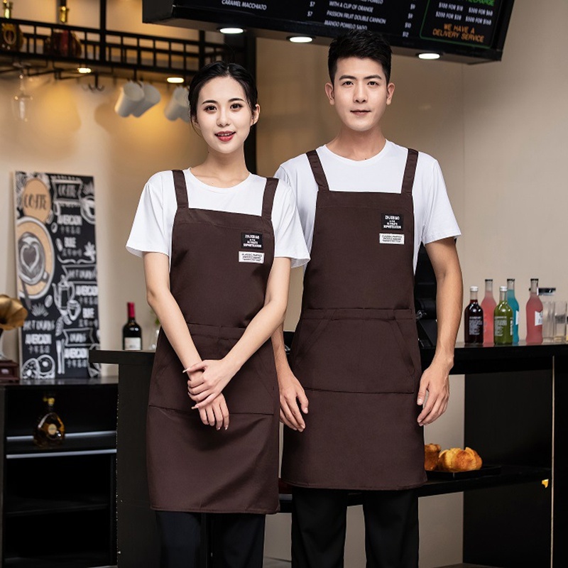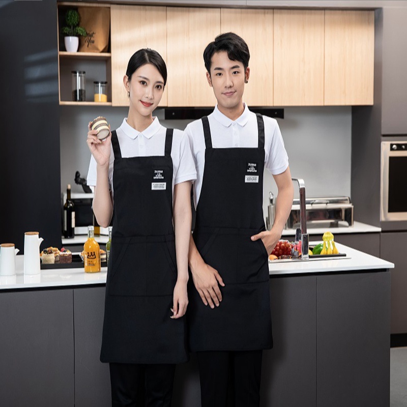 Ready Stock Waterproof canvas apron kitchen restaurant restaurant cafe waiter work apron home unisex black apron kitchen chef apron