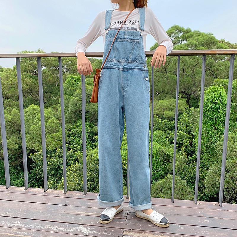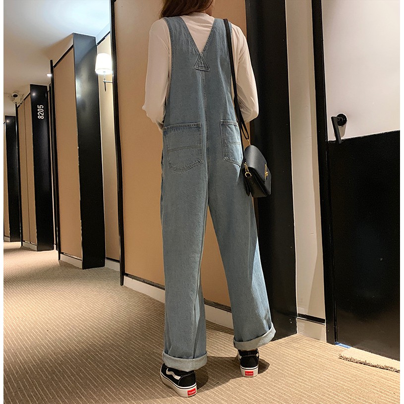 Ready Stock Women High Waist Skinny Full Length Loose Stretch Overall Jumpsuit Baju Denim Jeans Untuk Perempuan