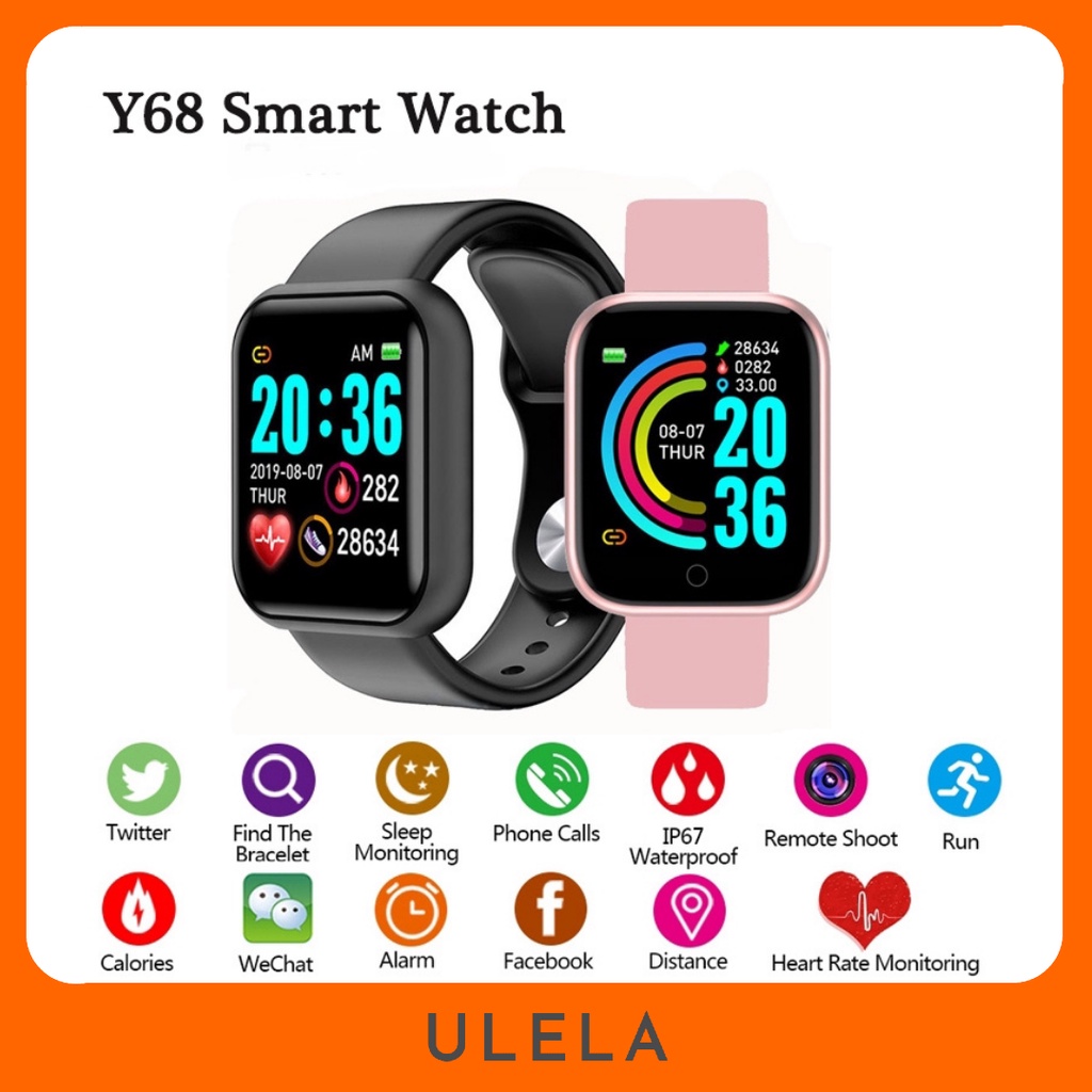 Ready Stock Y68 Pro D20s Smart Watch Bluetooth Waterproof Fitness Tracker Monitor Bracelet Wristband
