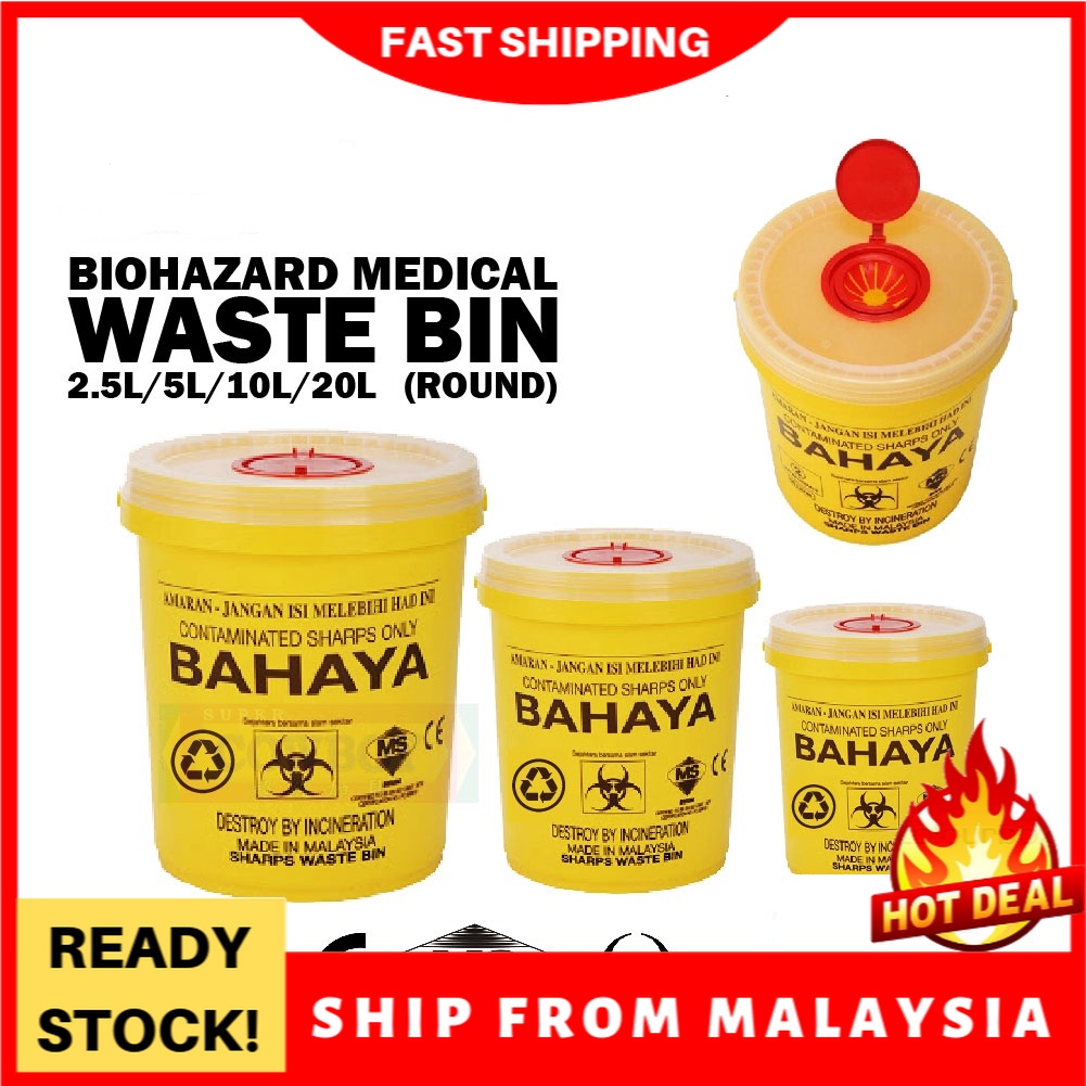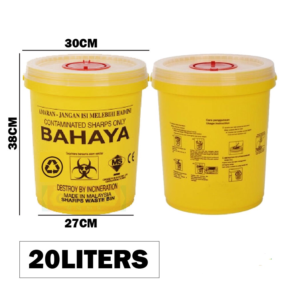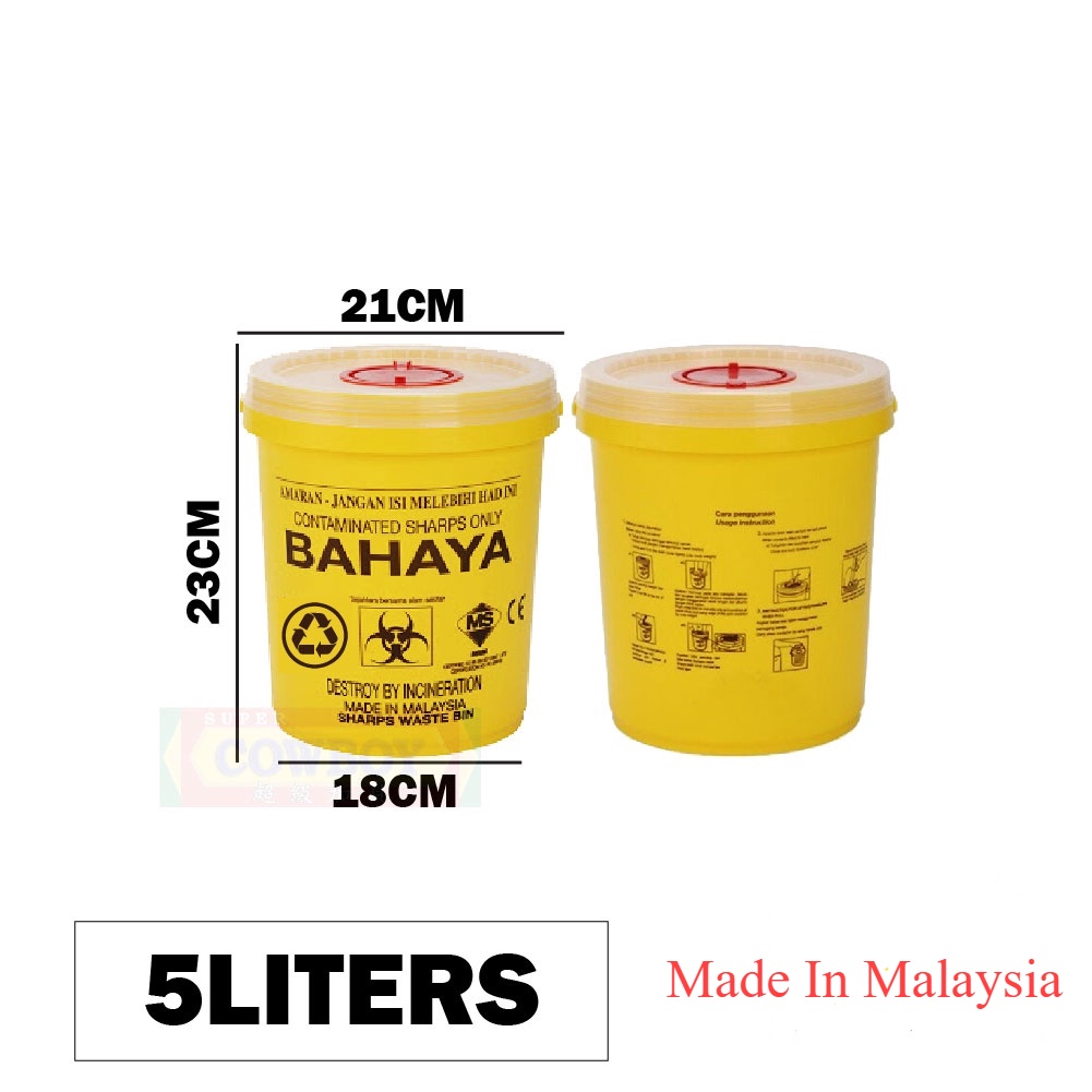 Ready Stock Yellow Biohazard Medical Waste Bin Sharps Bin Needle Box Insulin Syringe /Clinical Dusbin /Tong Sampah Jarum