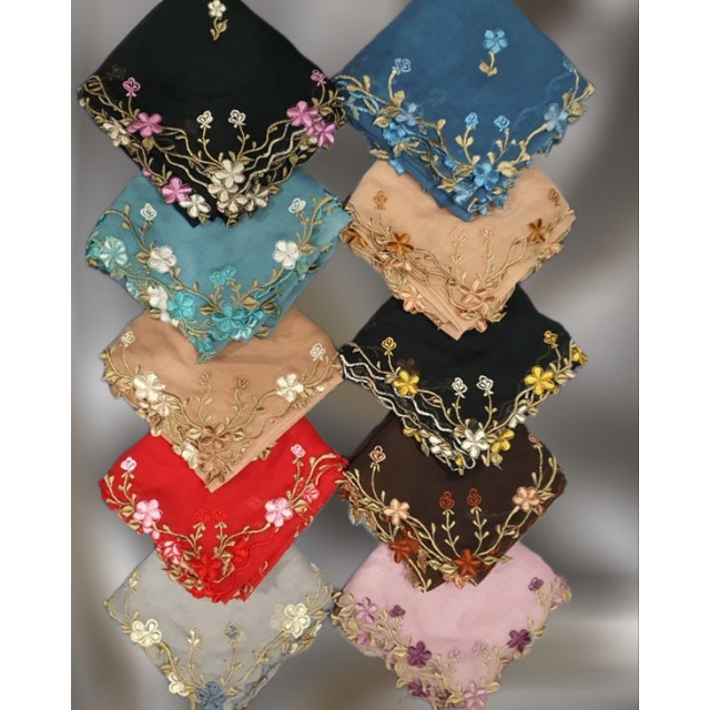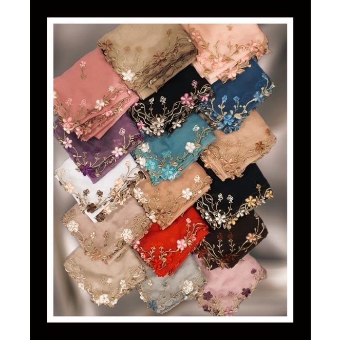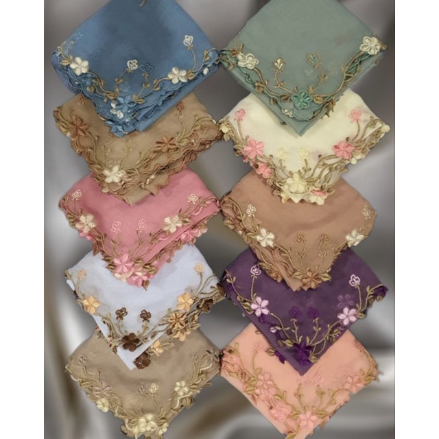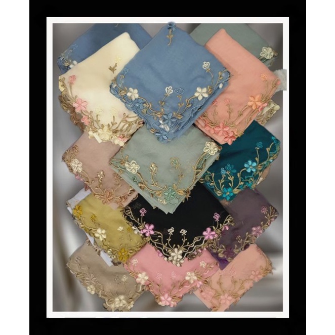 Ready Stok Classic Sulams Square | Kuntum | Bawal Sulam Klasik Premium Cotton Voile Sulam Biku Bawal Sulam Mesin