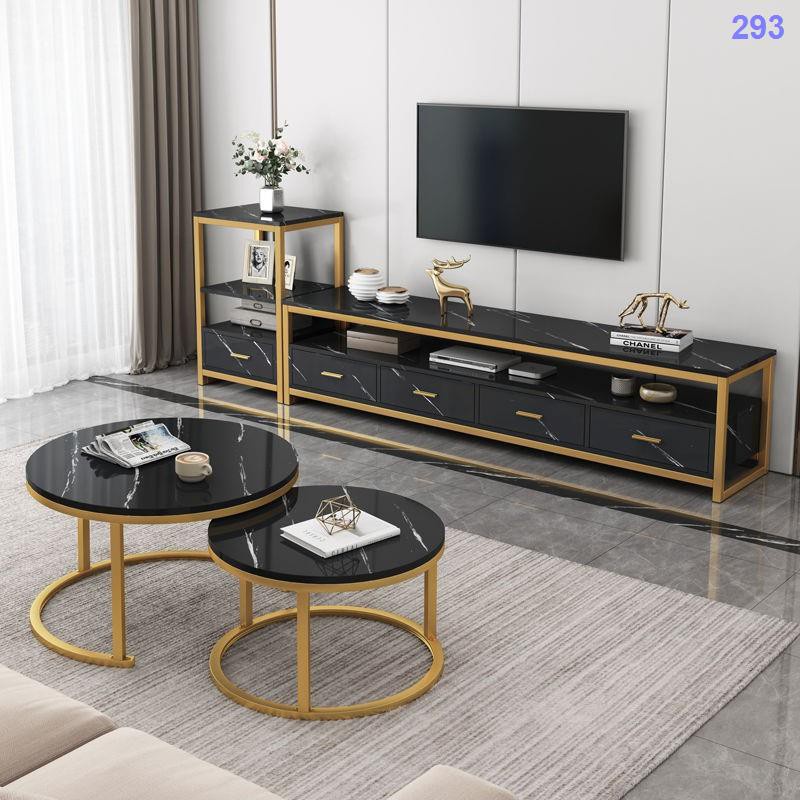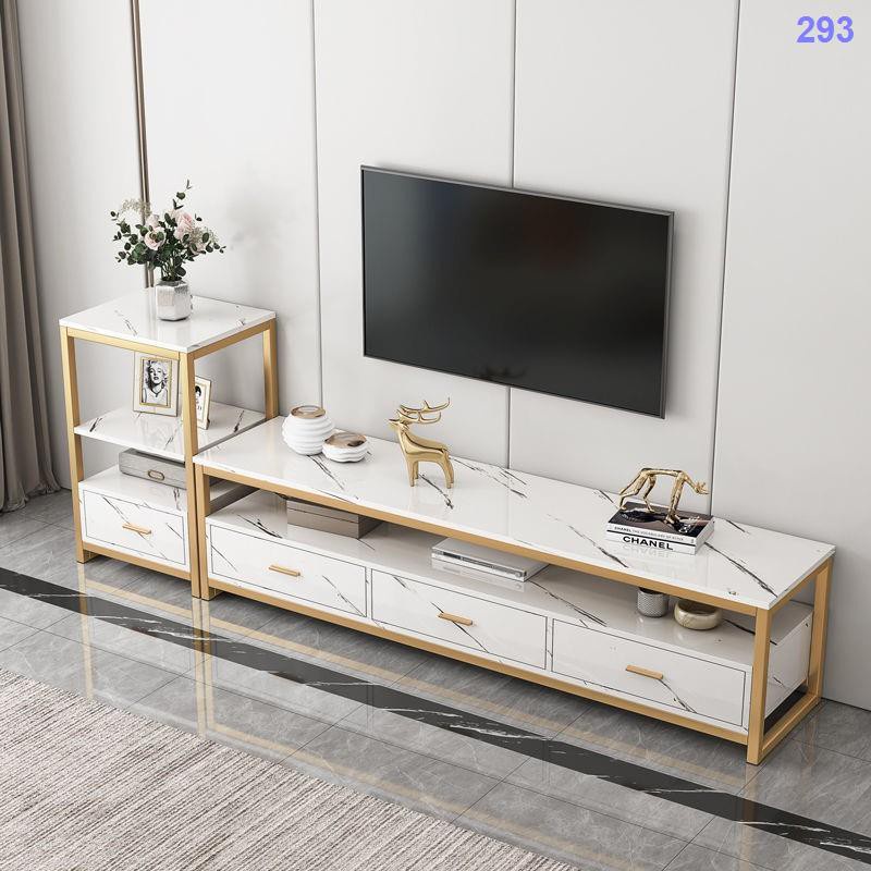 Ready stock!TV cabinet coffee table combination imitation marble modern minimalist small apartment light luxury floor se
