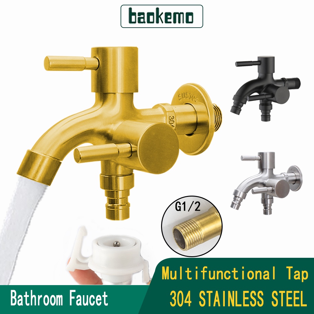 304 Double Tap Multifunctional Stainless Steel Two Way Tap - Black