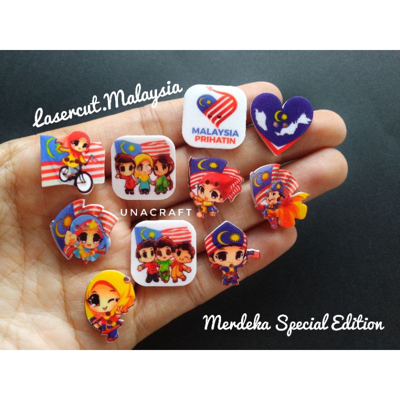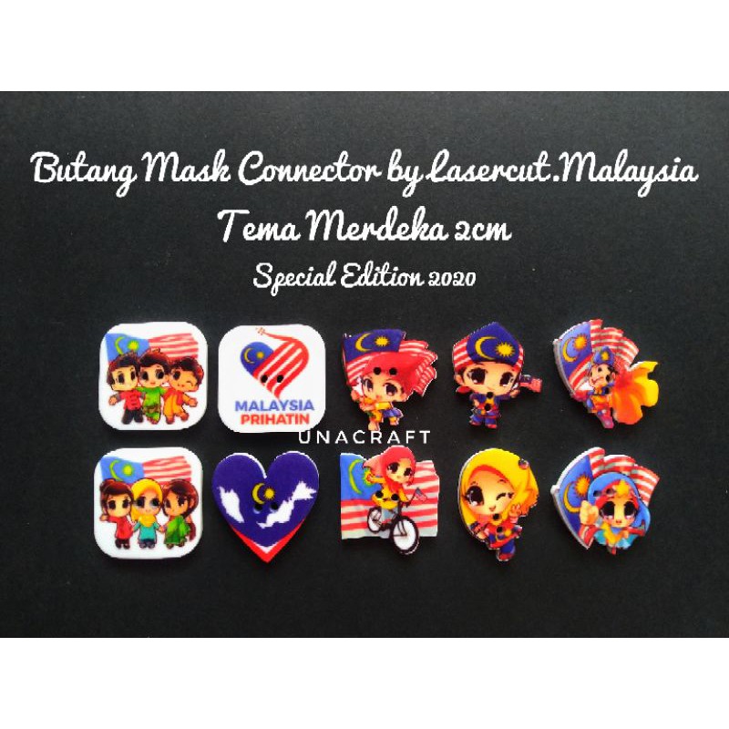 Ready stock PRINTED BUTTON THEME MERDEKA / BUTANG COMEL / BUTANG TEMA MERDEKA MASK CONNECTOR / Ayub & co