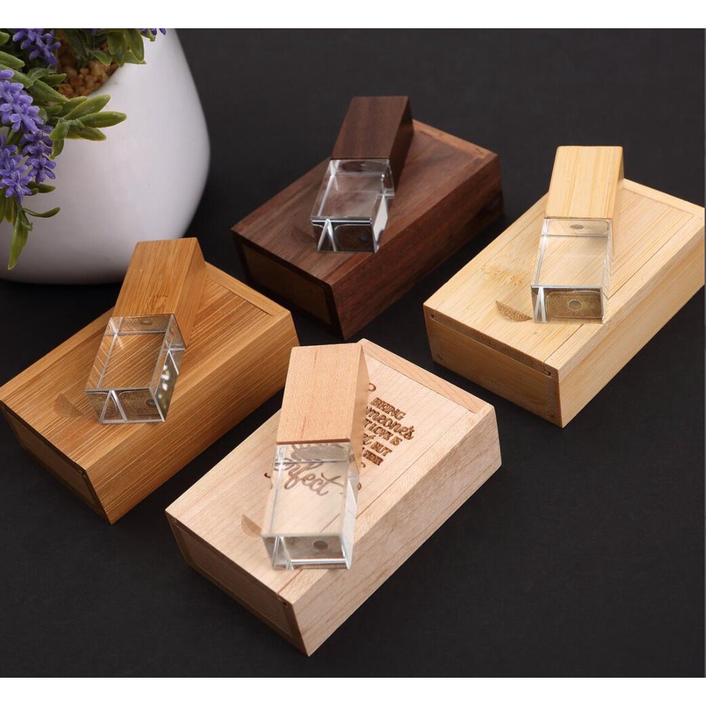 Ready stock custom logo beautiful wood crystal pendrive pen drive usb 2.0 usb flash drive 4GB 8GB 16GB 32GB