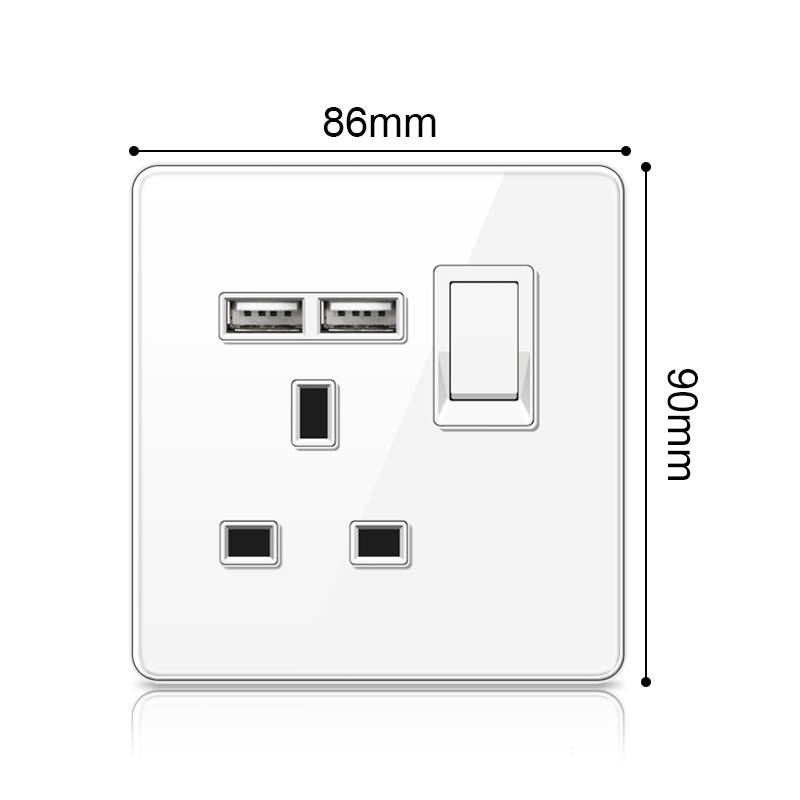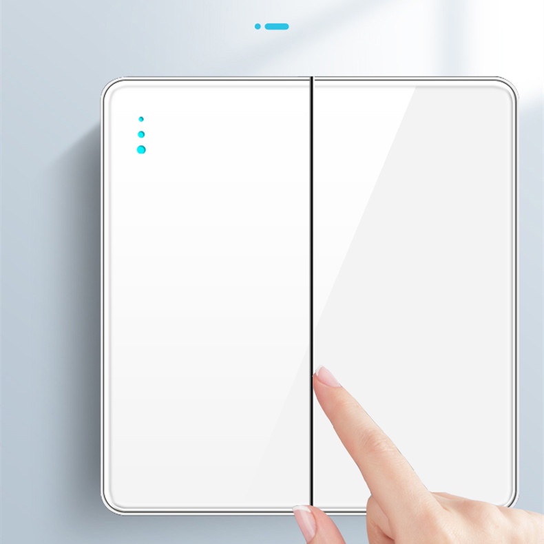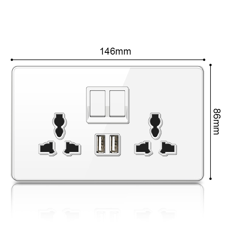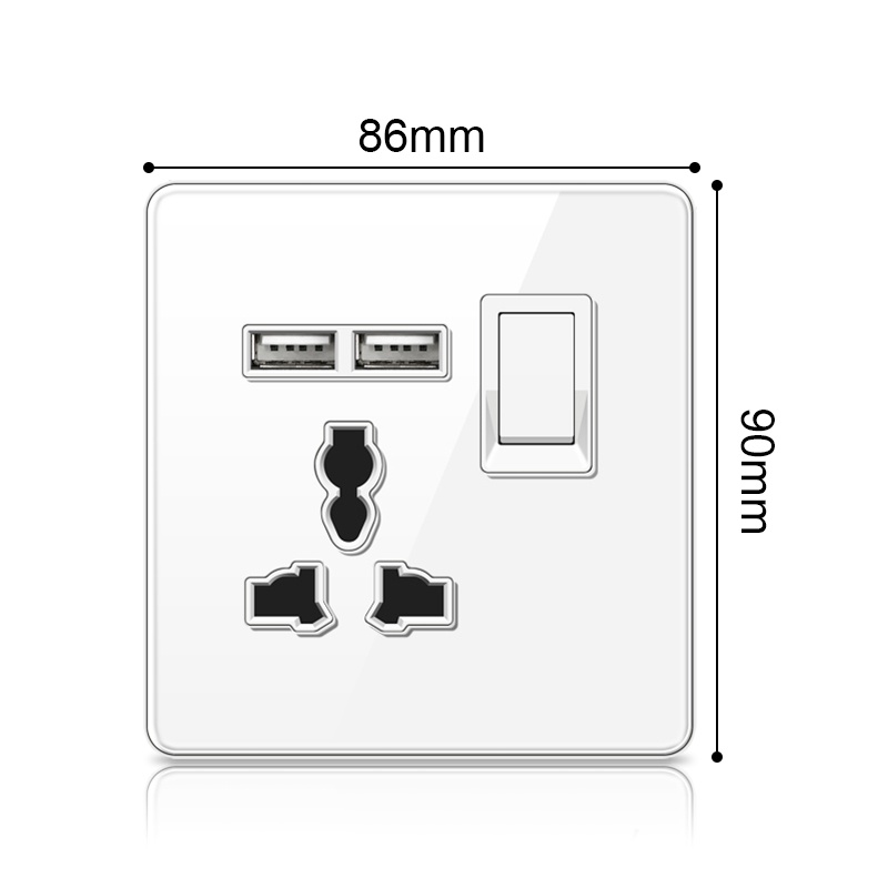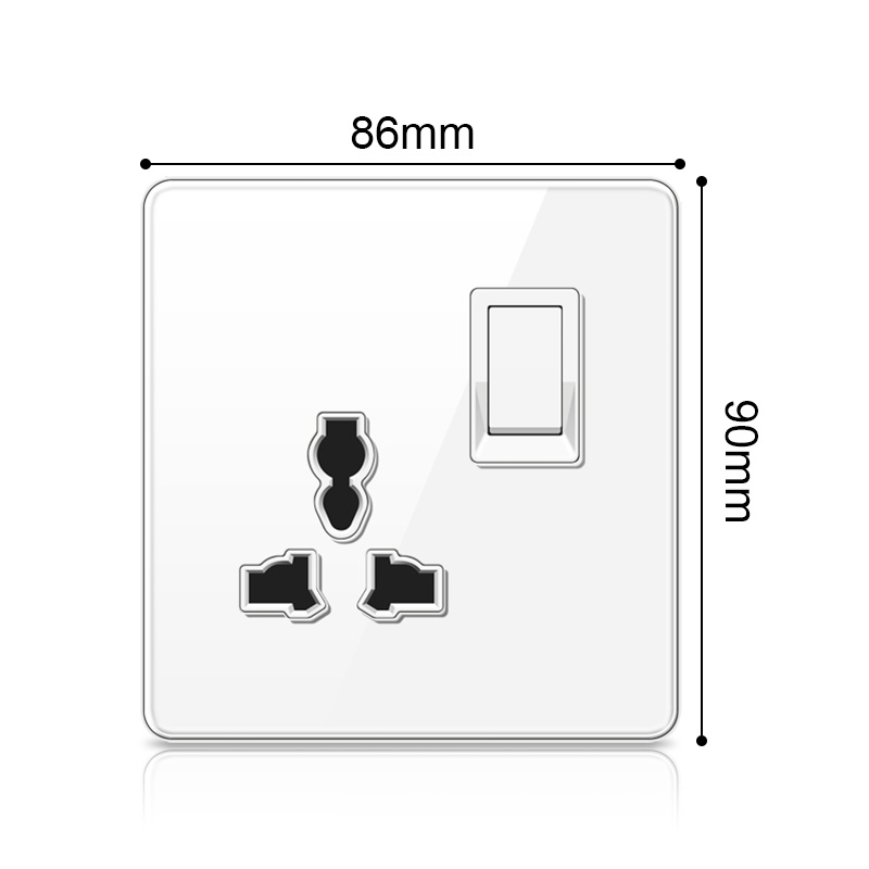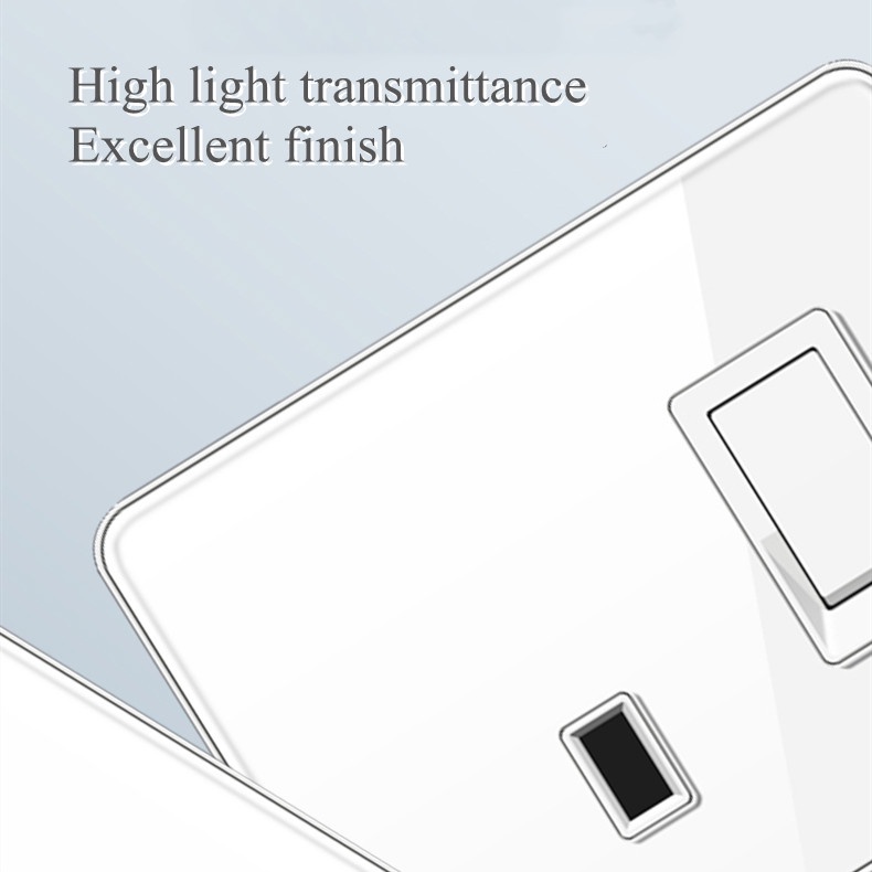 Ready stock overall tempered glass series wall power socket 16A light controller wall switch fluorescent indicator-white