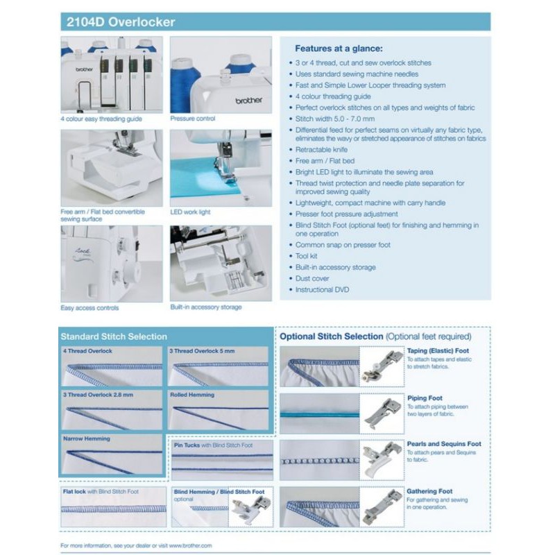 ReadyStock Brother Overlock 2104D 3/4 Threads Easy to Use Sewing Machine Portable / Mesin Jahit Tepi