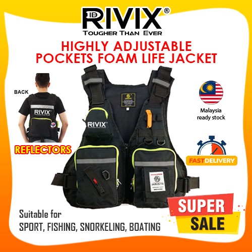 ReadyStock Outdoor Foam Life Jacket Reflector Pockets Whistle Multifunction High Quality PFD Floating Jacket keselamatan