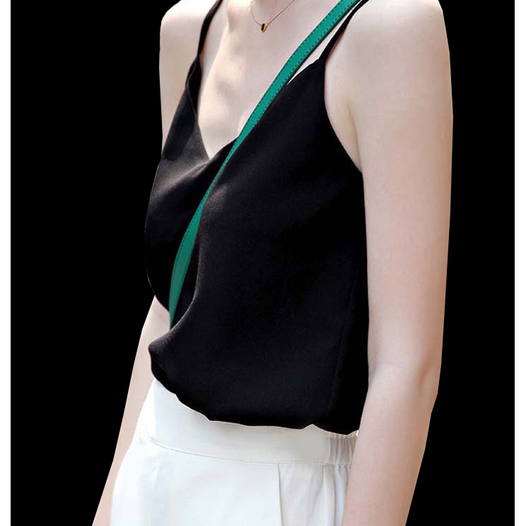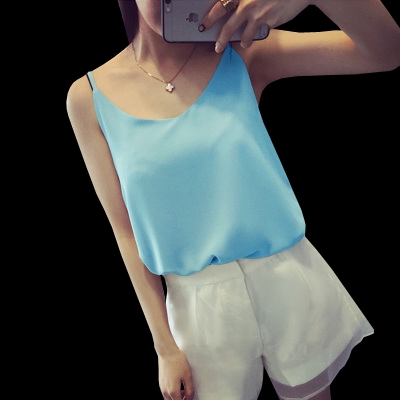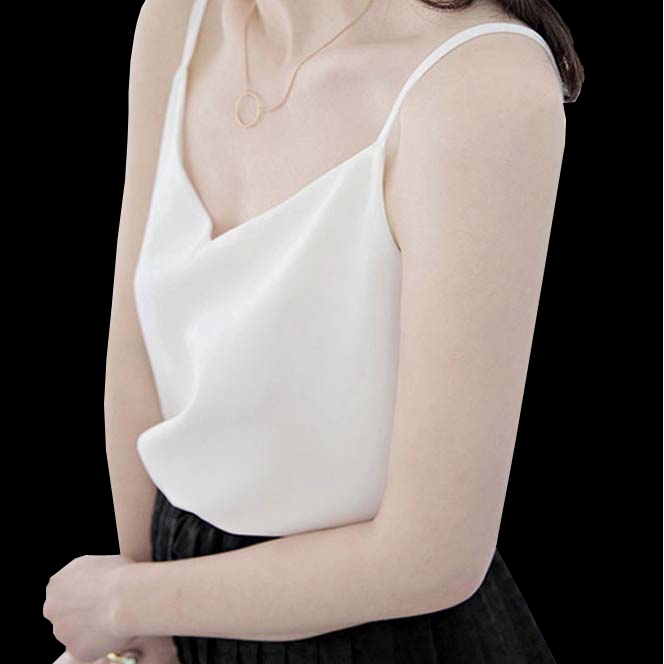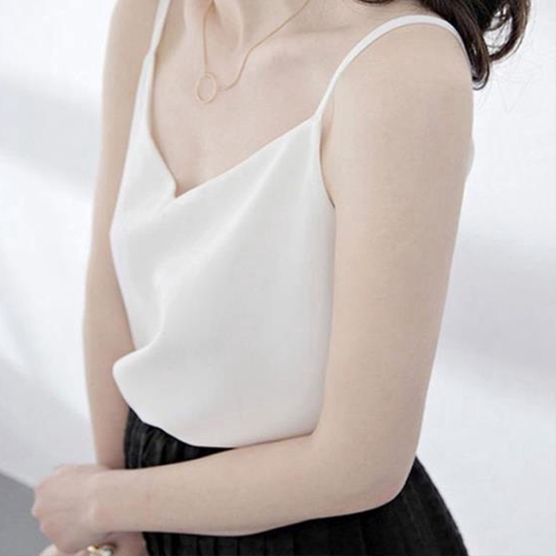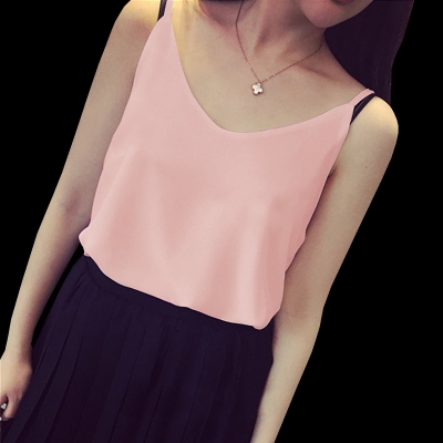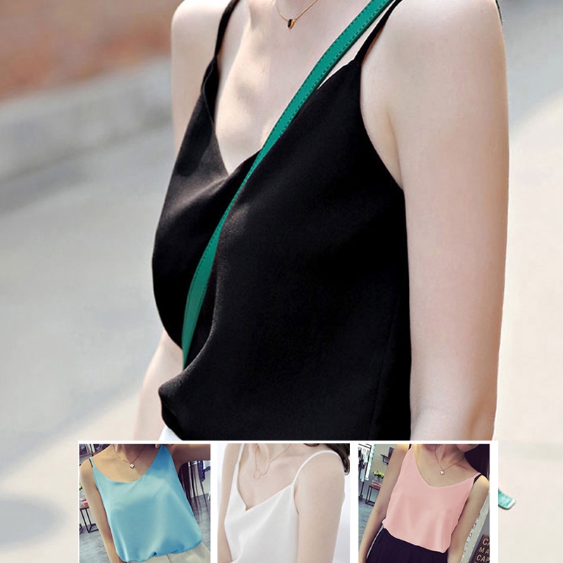 ReadyStock S-3XL Loose V Neck Plain Solid Color Double Layer Chiffon Spaghetti Camisoles Tank Tops Women Korea Fashion