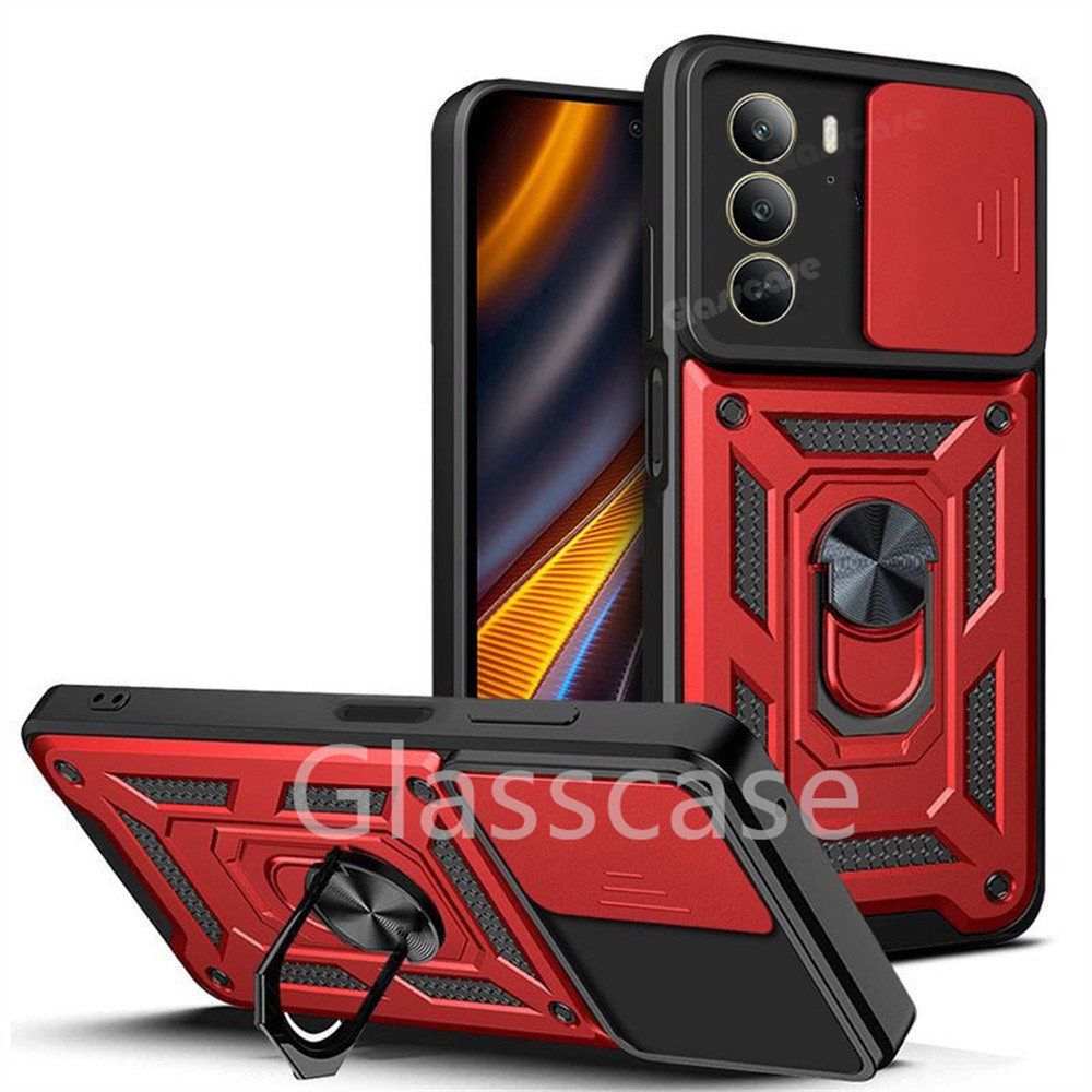 Realme C71 Casing For Realme C75 X C75X C71 C65 RealmeC75 C 75X RealmeC71 RealmeC65 Phone Case Metal Armor Ring Bracket Stent Push Camera Shockproof Protection Casing Hard Cover