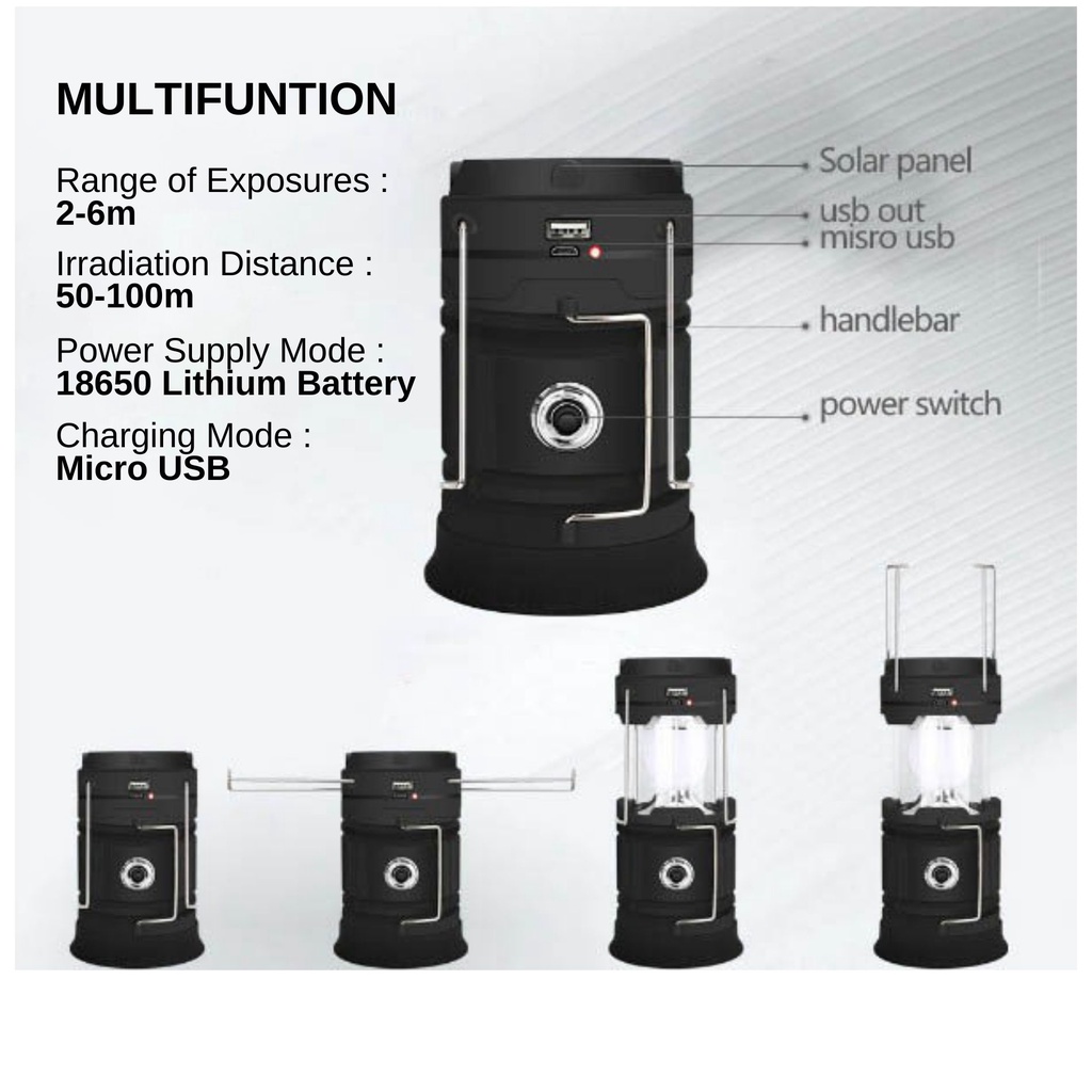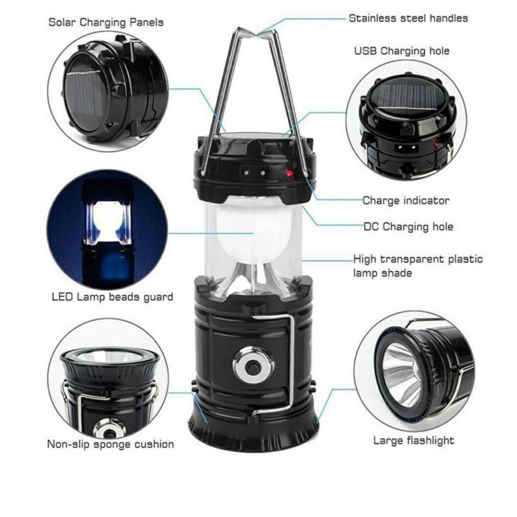 Rechargeable 3 in 1 Solar Ultra Bright 6 LED Camping Flashlight Lampu Tourch Light RANDOM COLOUR ( SH-5800T / HS-5900T )