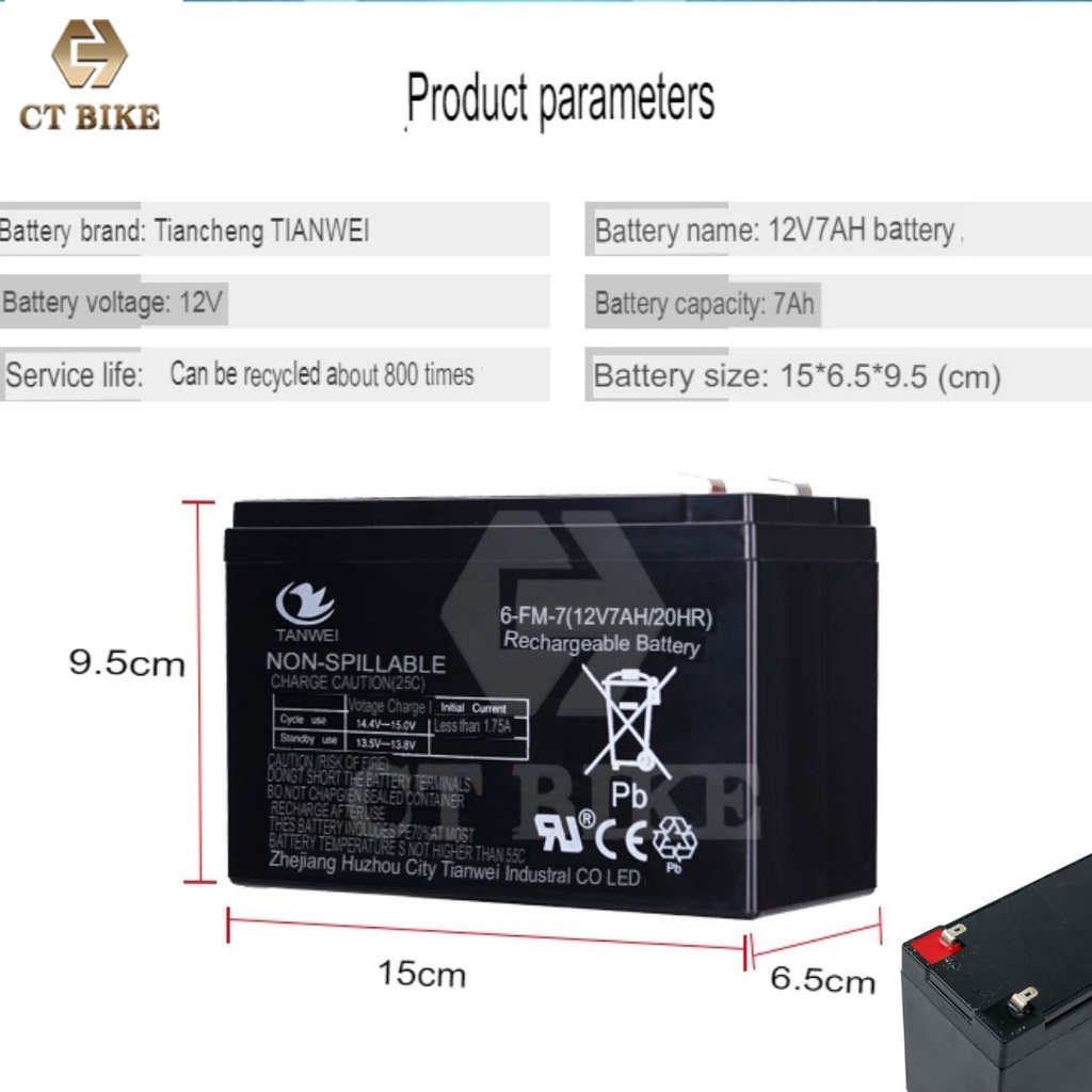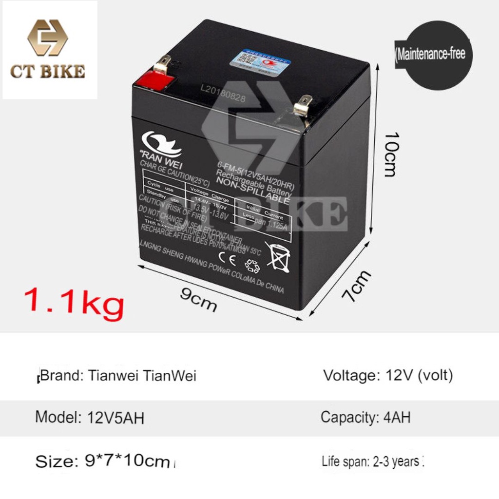 Rechargeable Battery 12V 4.5Ah / 5Ah / 7Ah Tian Wei Lead Acid Sealed Battery For E-Scooter/ Kids Car / Motor Bike