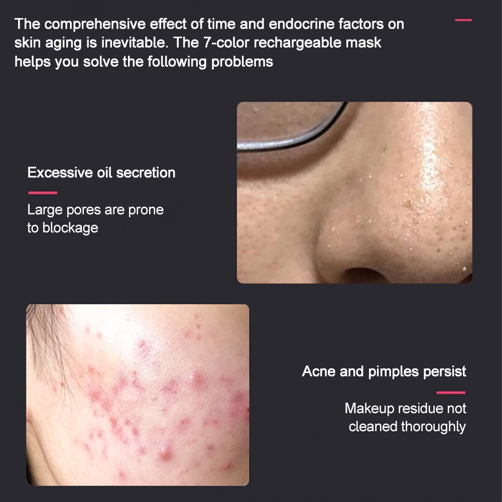 Rechargeable Facial LED Mask 7 Colors LED Photon Therapy Beauty Mask Skin Rejuvenation Lifting Dark Spot Cleaner Device