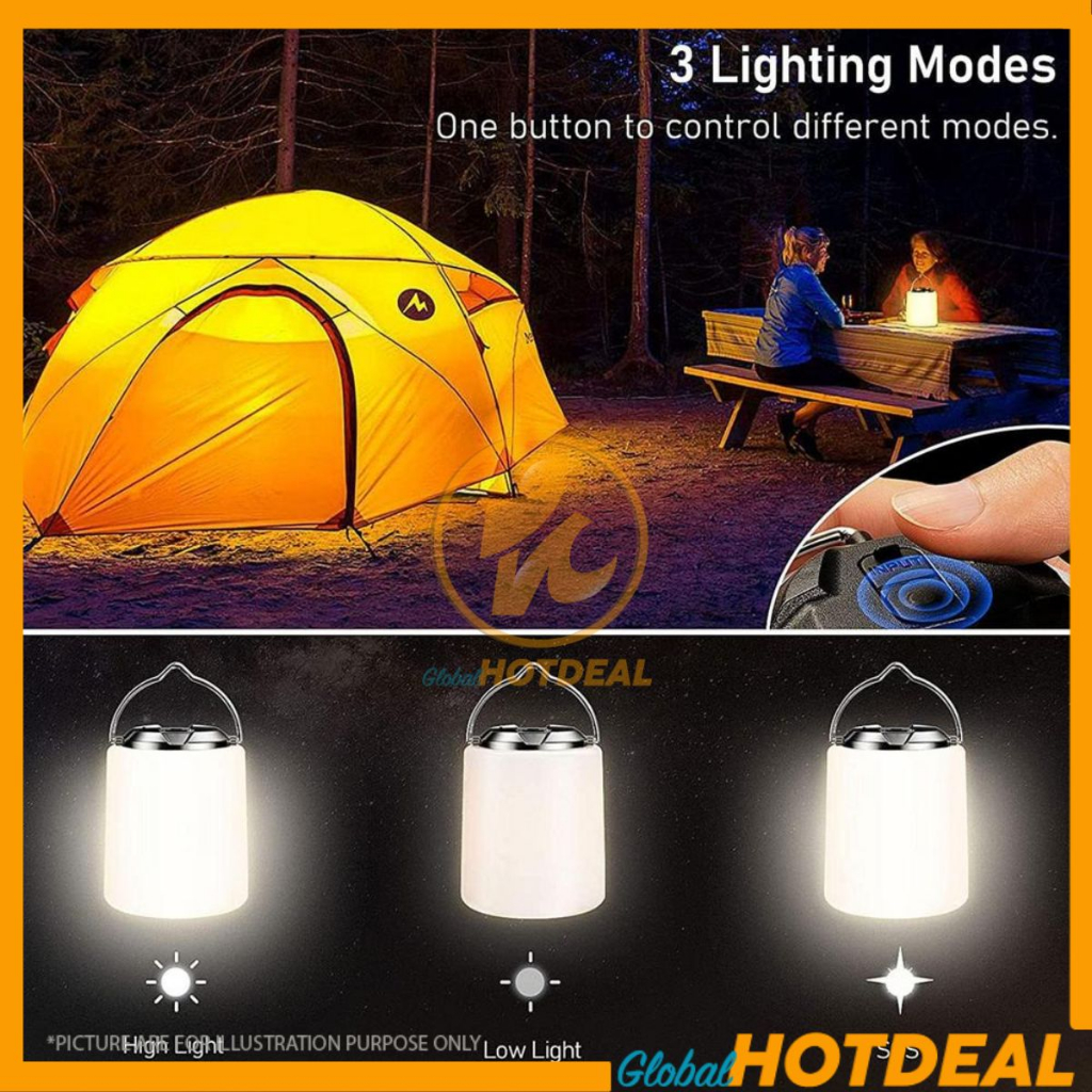 Rechargeable LED Night Light Portable Lantern Camping Light Type-C USB Lampu Gantung Khemah Tent Lamp Soft Light Fishing