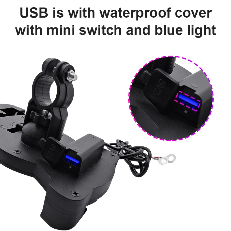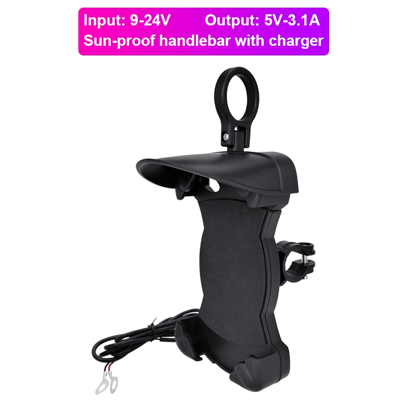 Rechargeable Motorcycle Phone Mount Holder 5V 3.1A USB Interface Mobile Phone Fast Charger Bike Phone Holder Handlebar Clamp With Sunshade Umbrella
