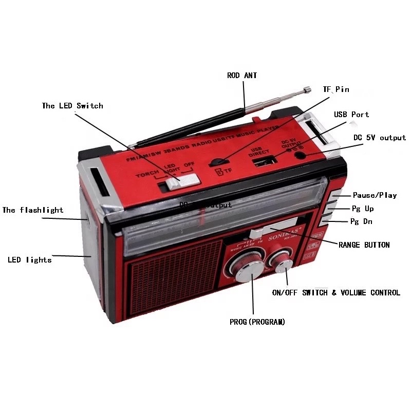 Rechargeable Radio Portable Radio USB Radio FM Radio Portable Multiband Radio KNSTAR RX-381BT With Bluetooth