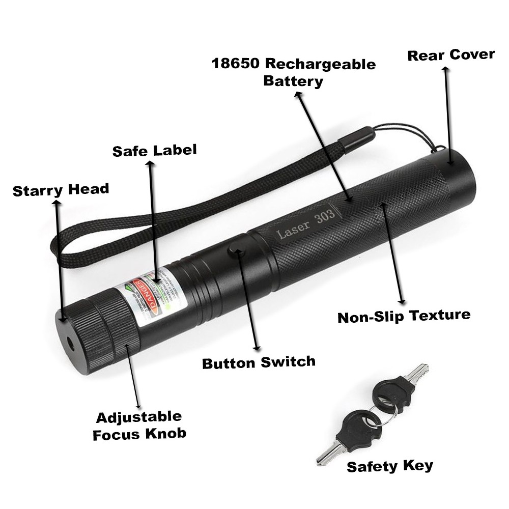 Rechargeable Wireless Long Range Green Laser Pointer Beam [303] - Adjustable Laser Beam/Safety Lock/High Power