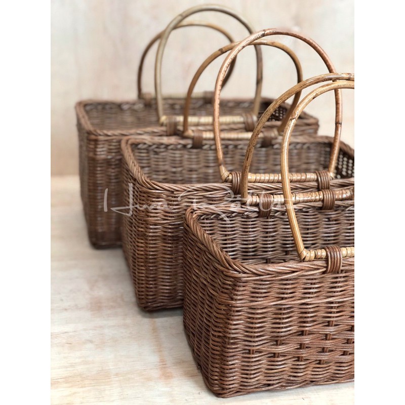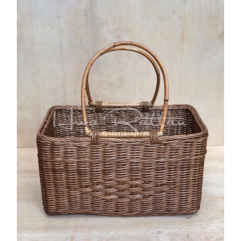 Rectangle rattan basket picnic basket car storage basket handcarry carrying basket Bakul rotan anyaman segi empat tepat