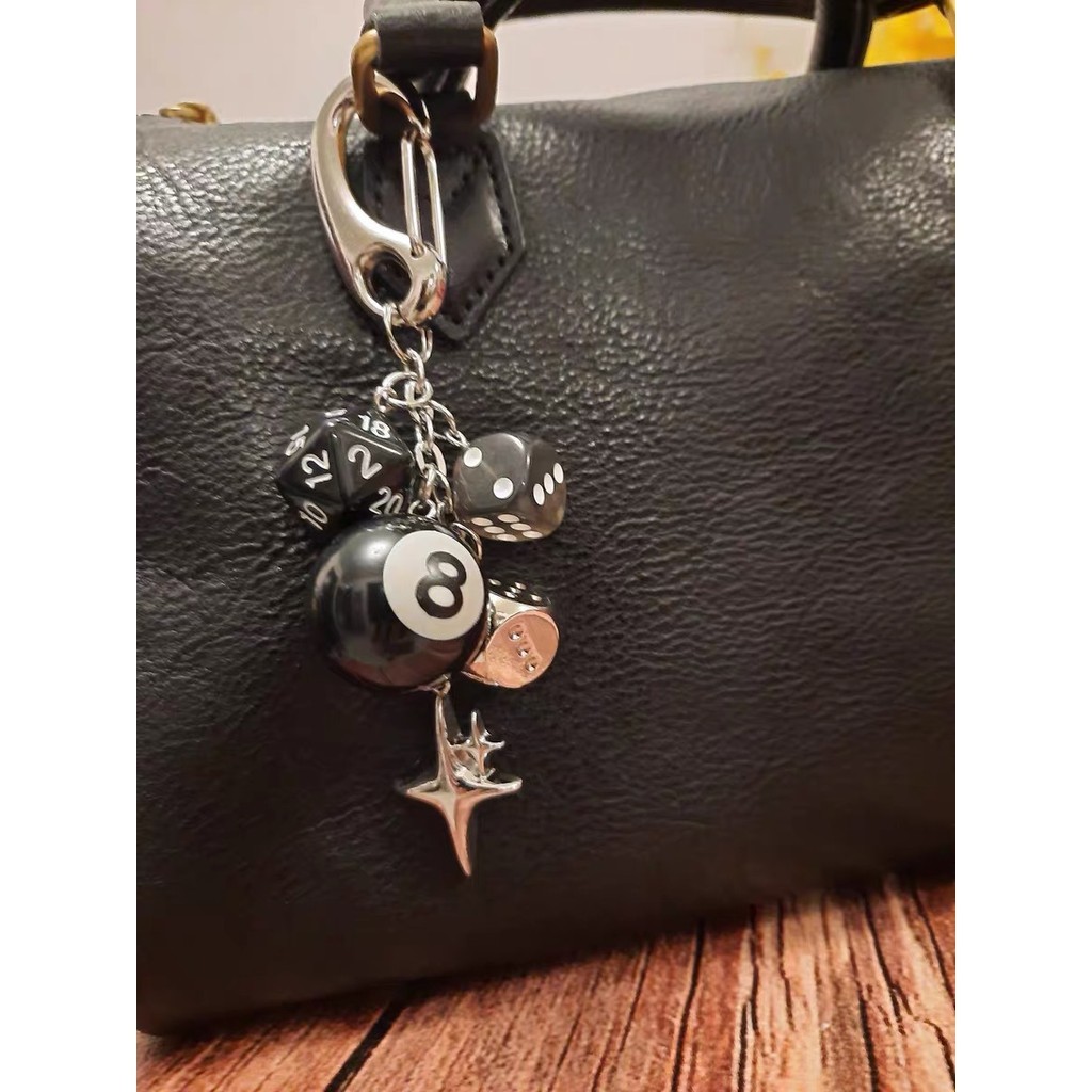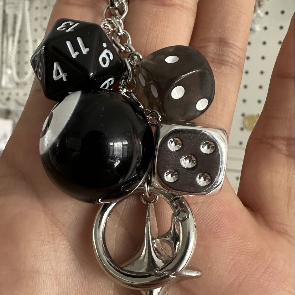 Gothic Dice Keychain - Handmade Obsidian Pendant for Bags & Keys - Edgy Couple's Metal Accessory with Spinner Design