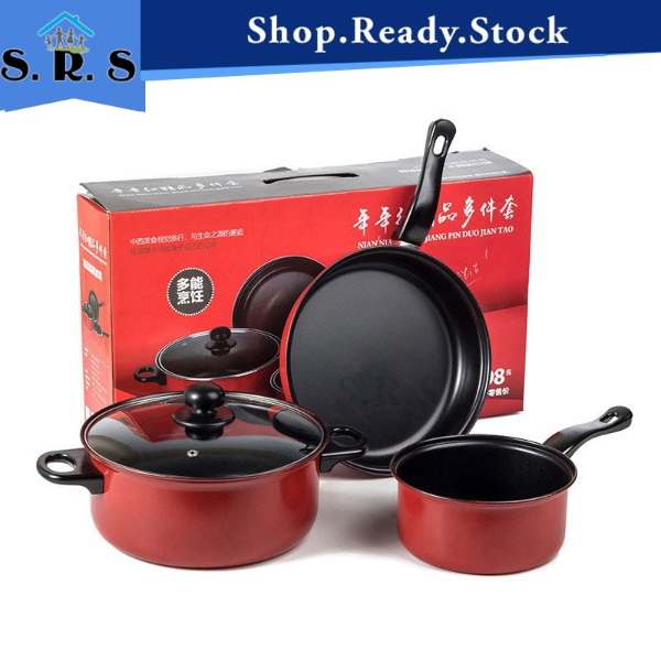 SRS_READY STOCK Non stick Frying Pan & Pot Sets (4 in 1) periuk masak