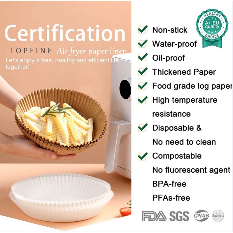 [Ready Stock] TOPFINE Air Fryer Paper 20cm and 24cm Round Disposable Baking Paper Round Parchment Paper Liners Non-Stick