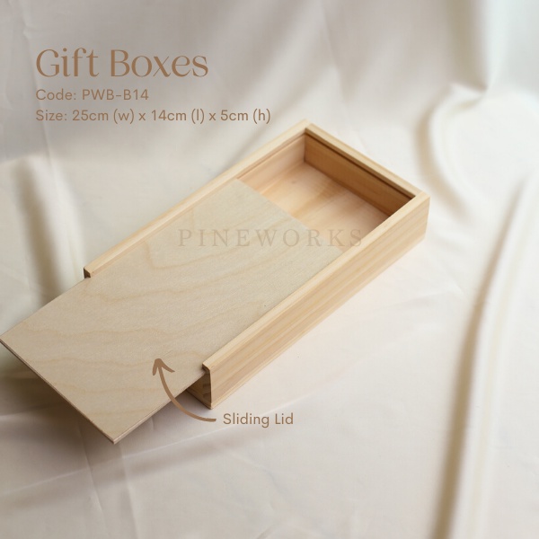 Rectangular Wooden Gift Box 25cm x 14cm Wedding Birthday Anniversary Door Curated Gift Boxes Kotak Hadiah Pineworks