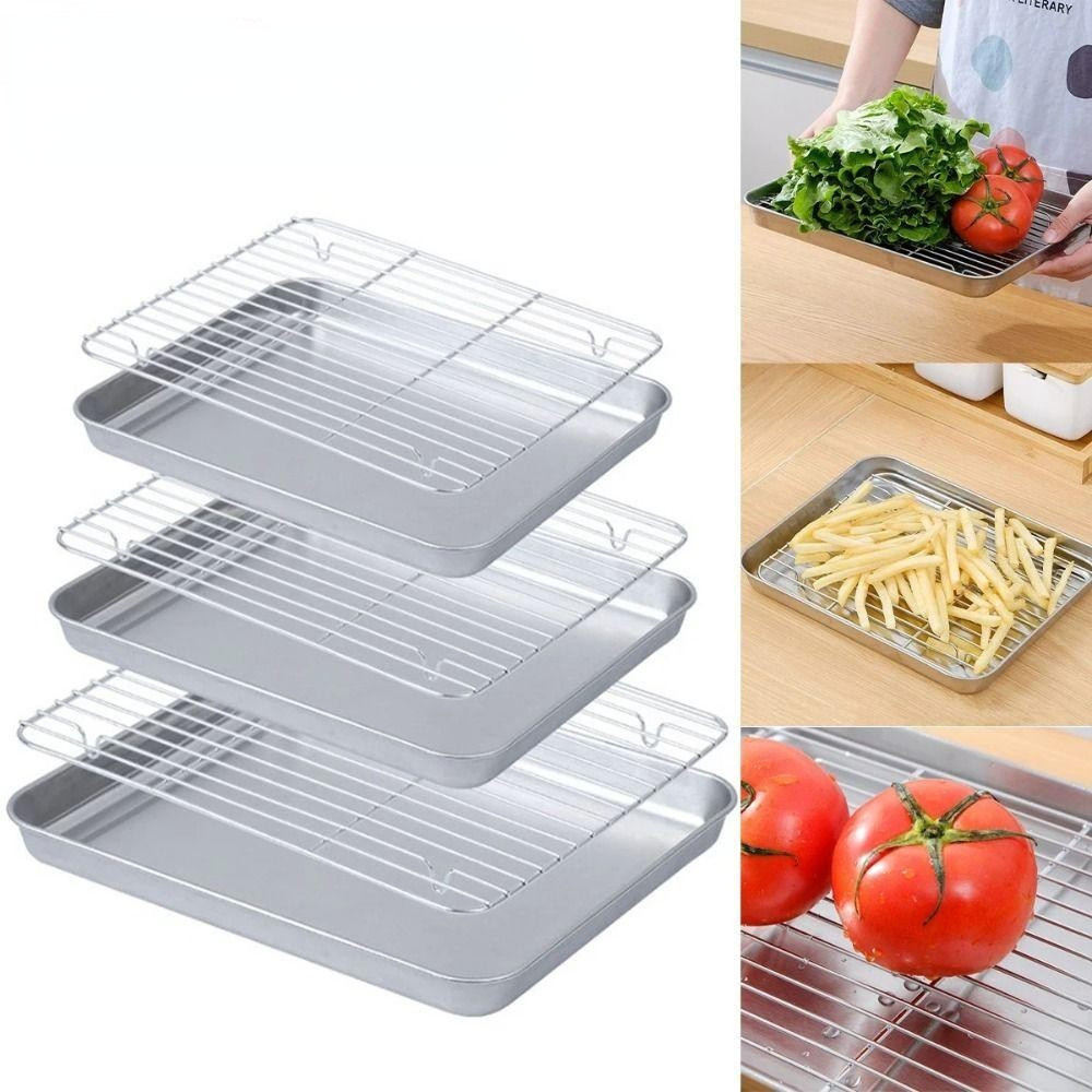Rectangule Tray with Baking Rack Serving Tray Food Tray Oven Baking Tray Pan Dish Grill Kitchen Tool