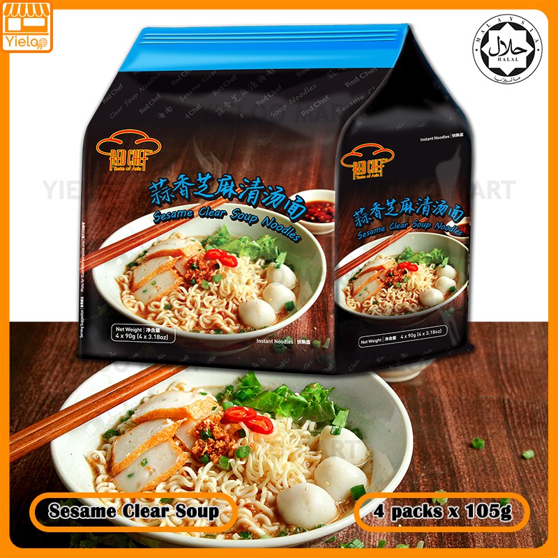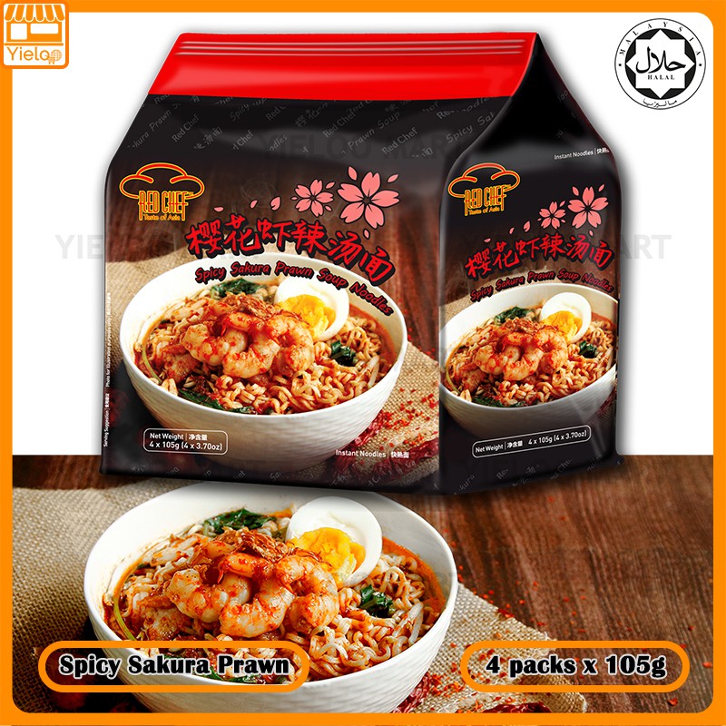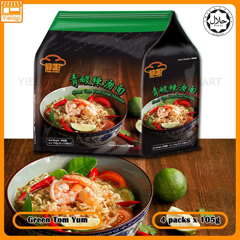 Red Chef Instant Noodles | 4 Flavours | Spicy Prawn / Green Tom Yum / Pandan White Curry / Clear Soup | 4 packs x 105g