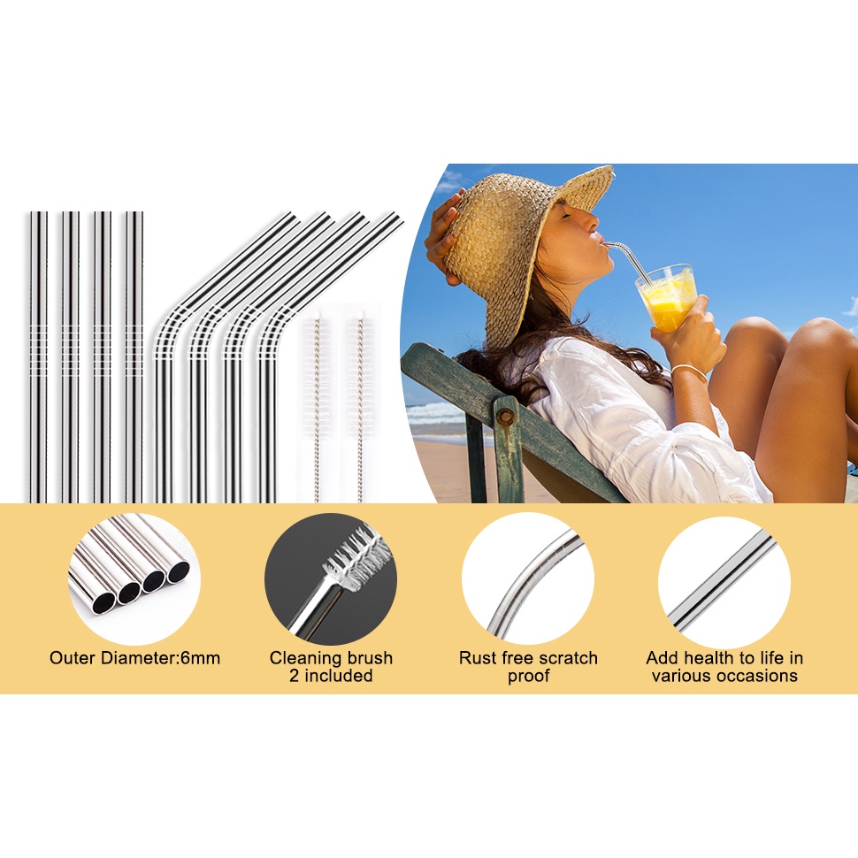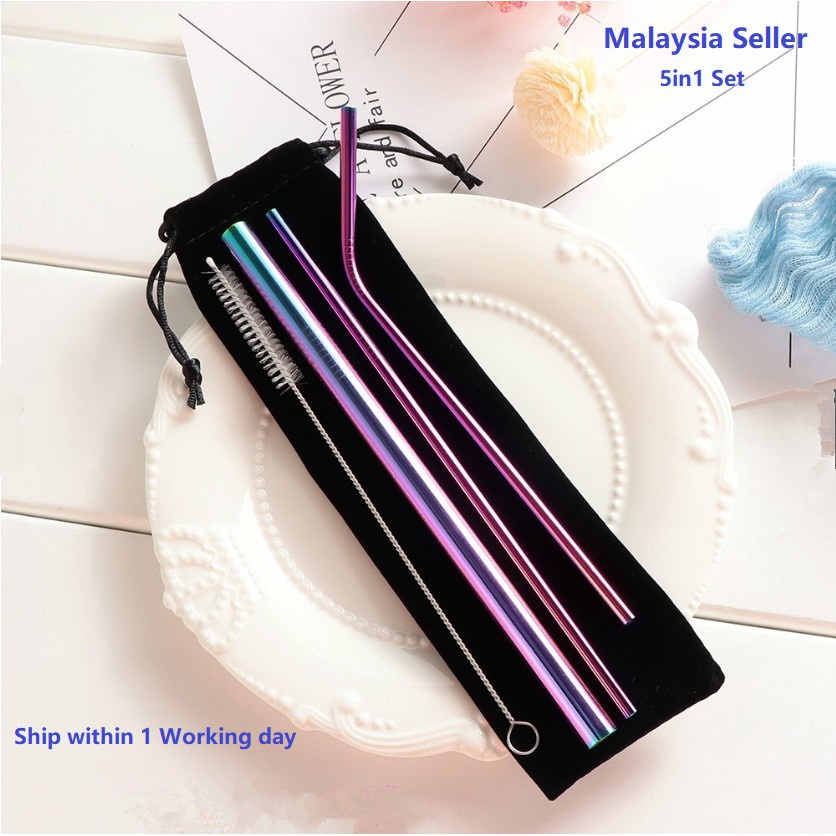 (Lower Price) 5Pack Stainless Steel Straw Eco Drinking Metal Straw Reusable Washable in Set