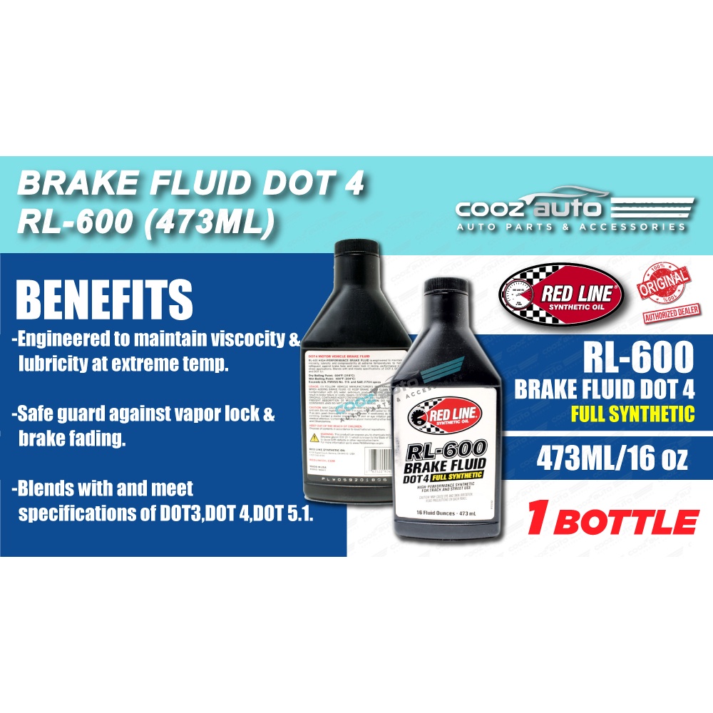 Red Line Redline RL-600 Brake Fluid Oil DOT 4 Full Synthetic 473mL