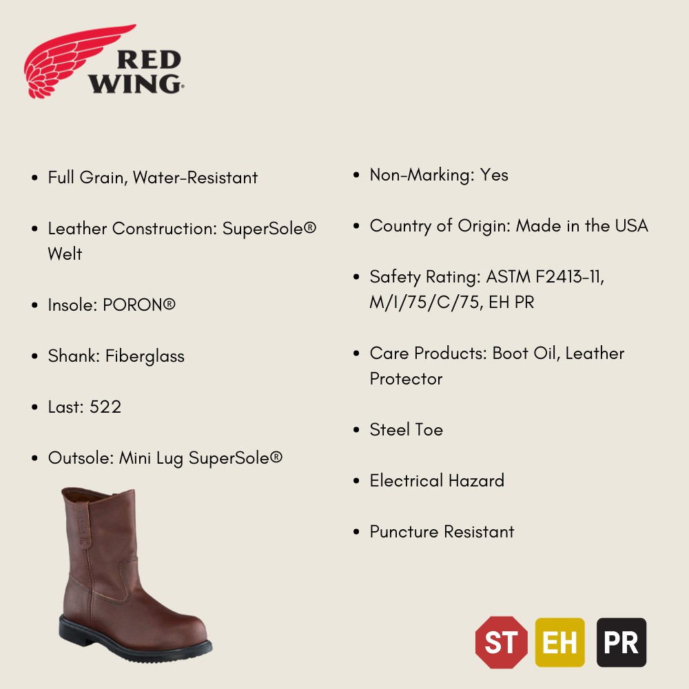Red Wing Safety Shoe 8264 Men's Pull On Steel Toe Boot (9")