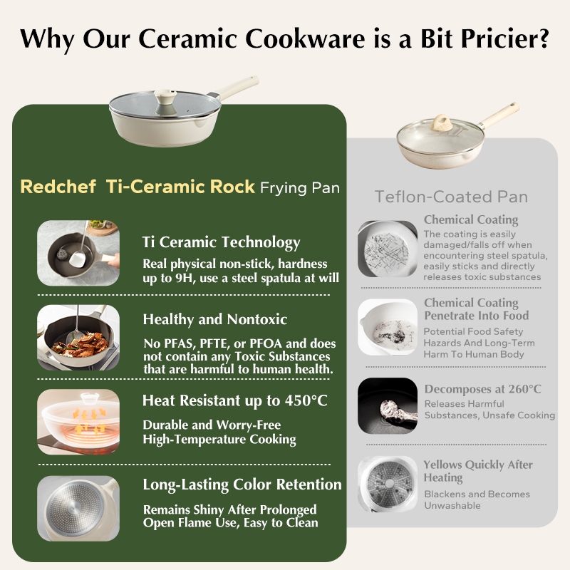 Redchef Nonstick Ti-Ceramic Deep Frying Pan Wok with Lid Non Toxic, PFAS& PTFE& PFOA Free Deep Frying Pan 26/28CM Suitable for All Stoves(Gas, Electric & Induction)