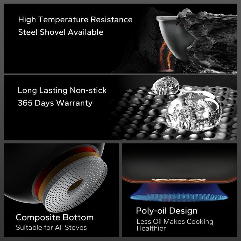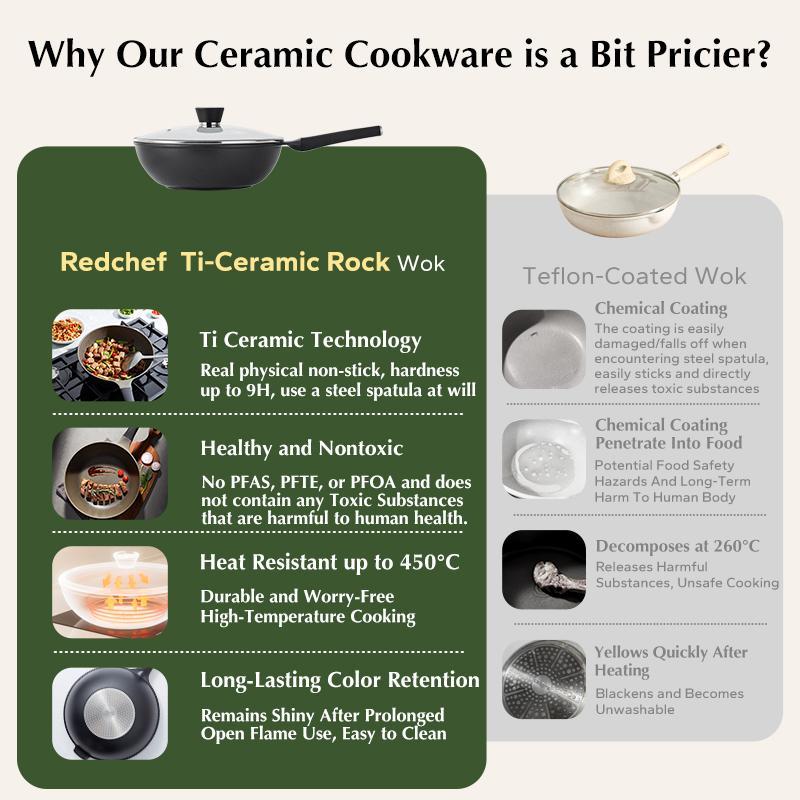 Redchef Nonstick Ti-Ceramic Wok Non Toxic, PFAS PTFE & PFOA Free Deep Frying Pan Suitable for All Stoves(Gas,Electric & Induction)