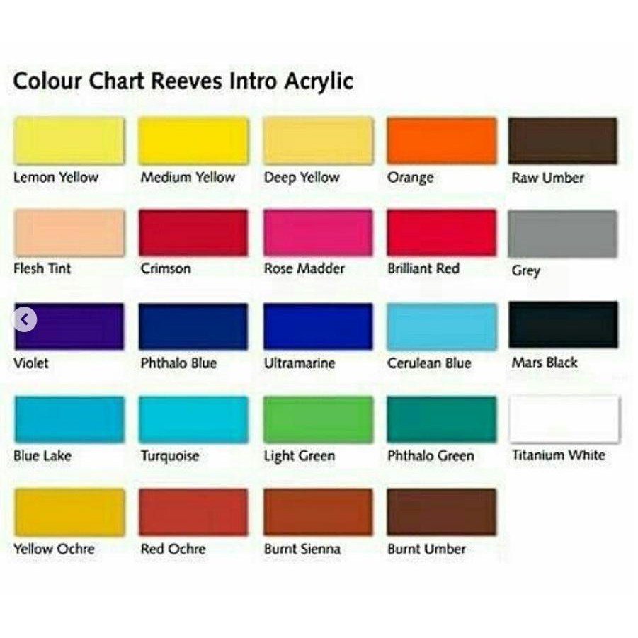 Reeves Intro Acrylic Colour 100ml Tube | Color Chart, Reeves | Acrylic Painting | Acrylic Paint