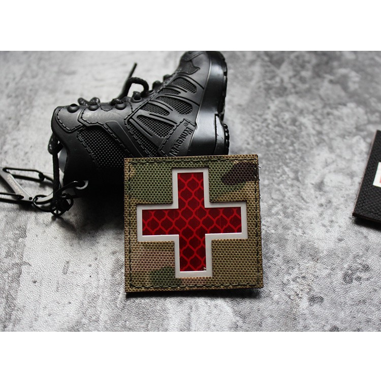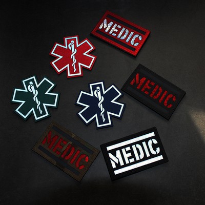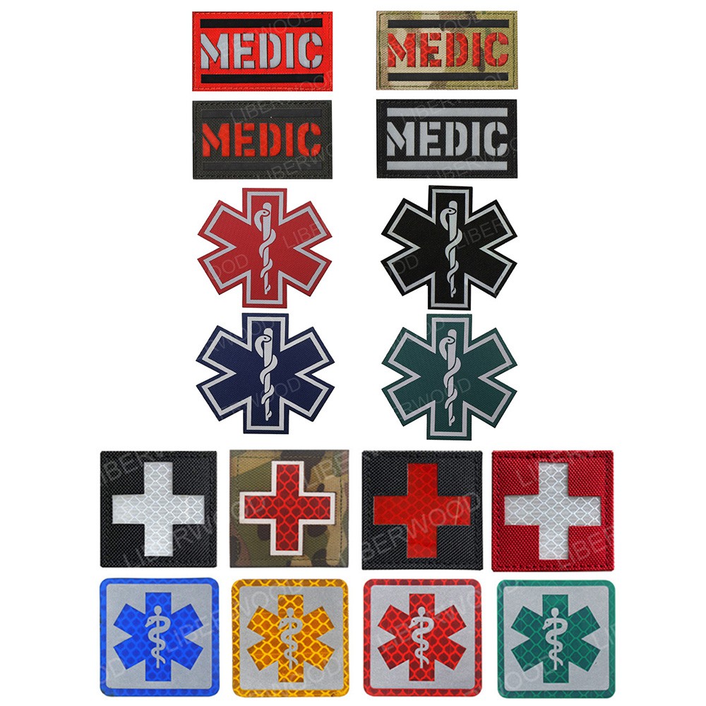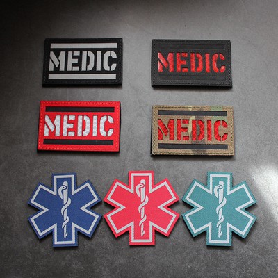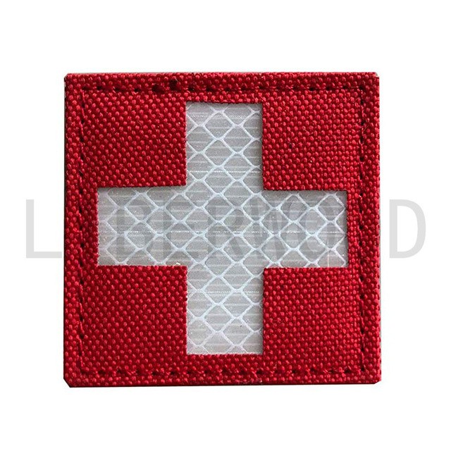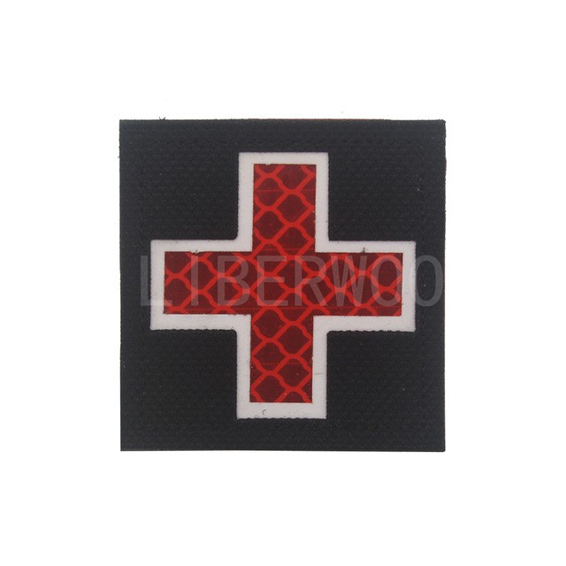 Reflective Medic Red Cross EMS EMT MED Tactical Patch Infrared IR First Aid Military Armband Hook-Fastener Backing