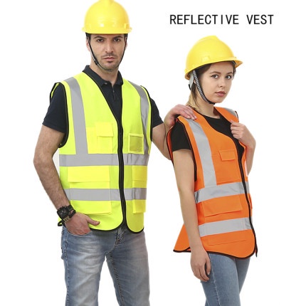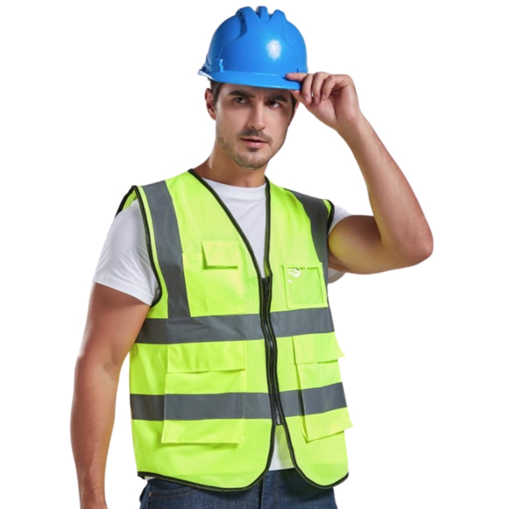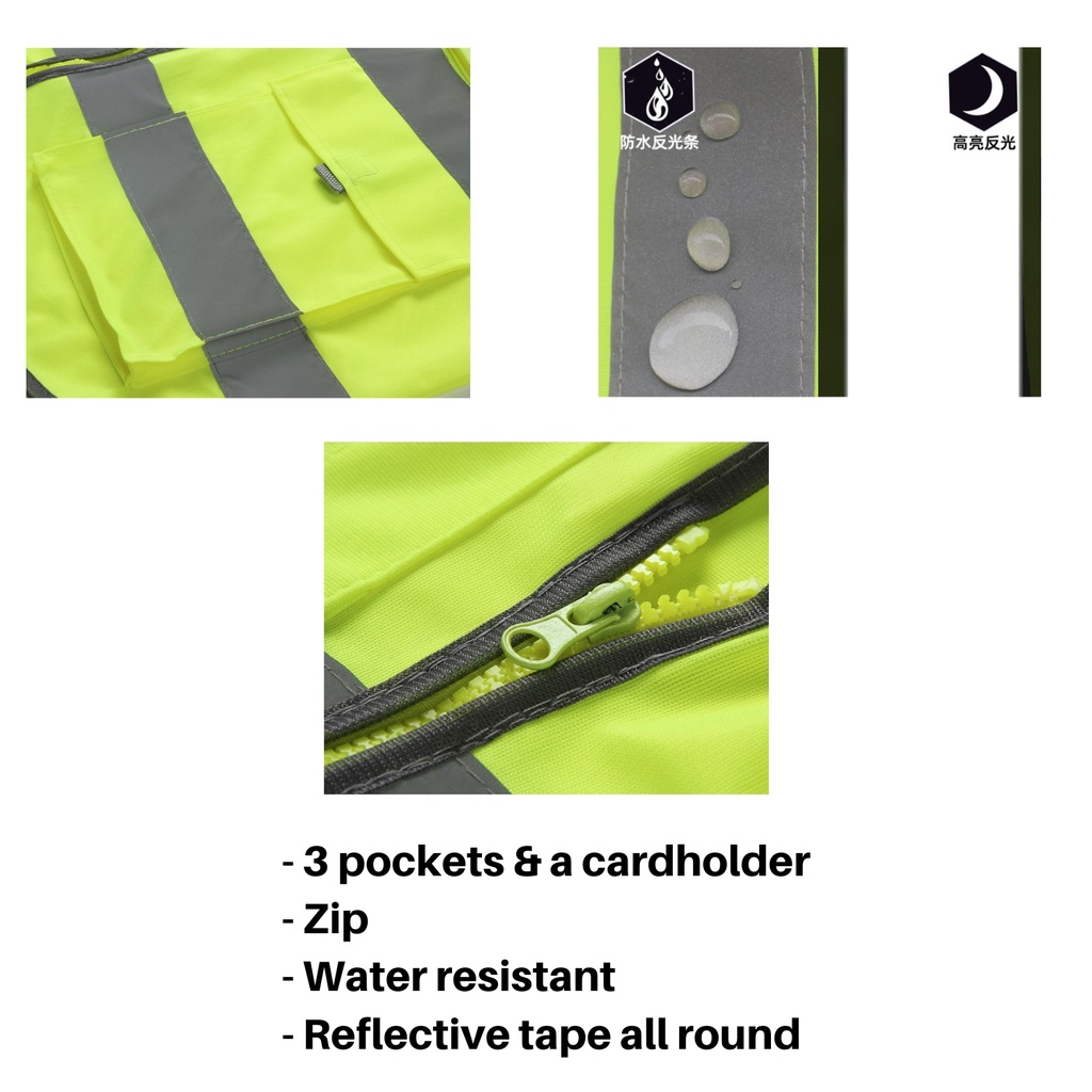 Reflective Safety Vest with Pocket Zip Vest Safety Jacket Unisex Baju Safety Vest Keselamatan Safety Vest Construction