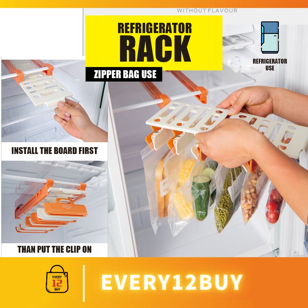 【𝐂𝐥𝐞𝐚𝐫𝐚𝐧𝐜𝐞 𝐒𝐚𝐥𝐞】Refrigerator Storage Rack Fridge Track Rak Organizer Peti Sejuk Dengan 6 Klip Ziplock