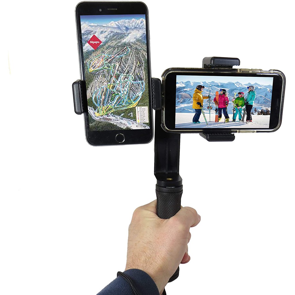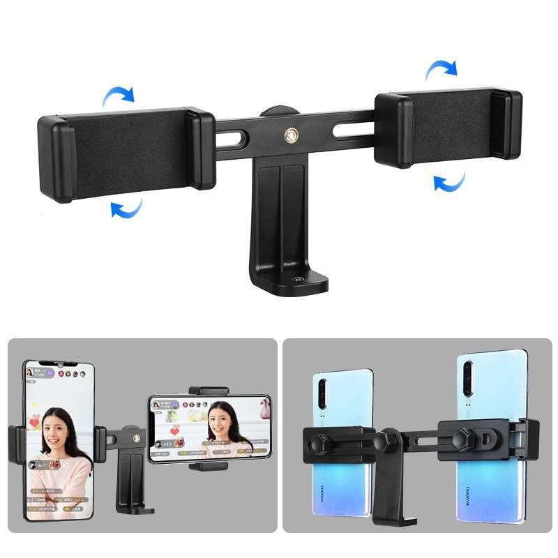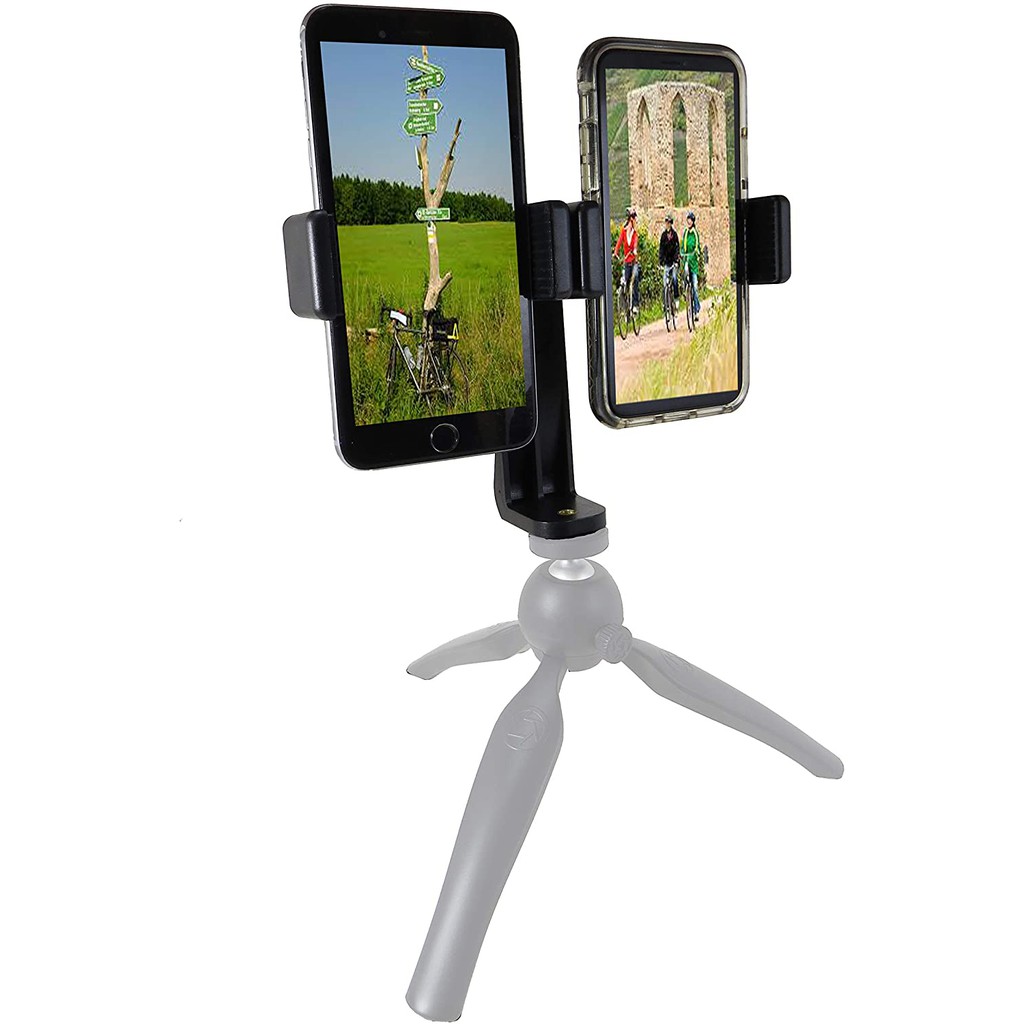 Refutuna Dual Device Tripod Holder Phone Holder Hand-Grip Mount Adapter for Live Video with Multiple Devices