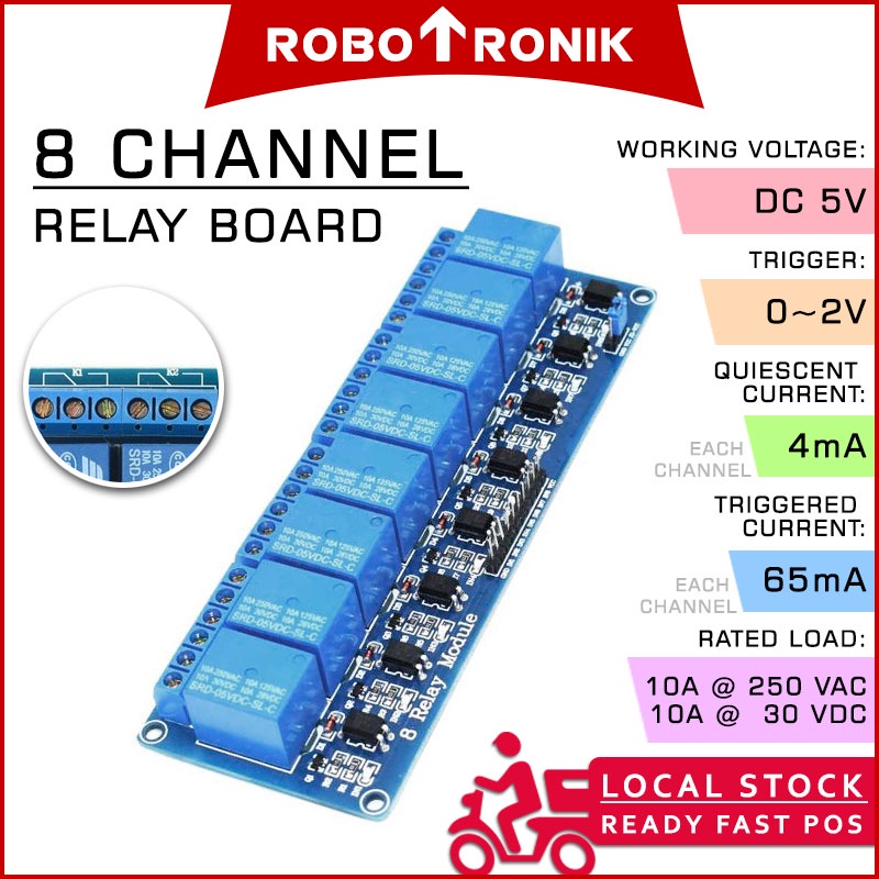 Relay Board Module - Active-Low 1, 2, 4, 8 Channel (5V / 12V / 24V) DC5V Arduino Raspberry PIC STM 32 DC Compatible