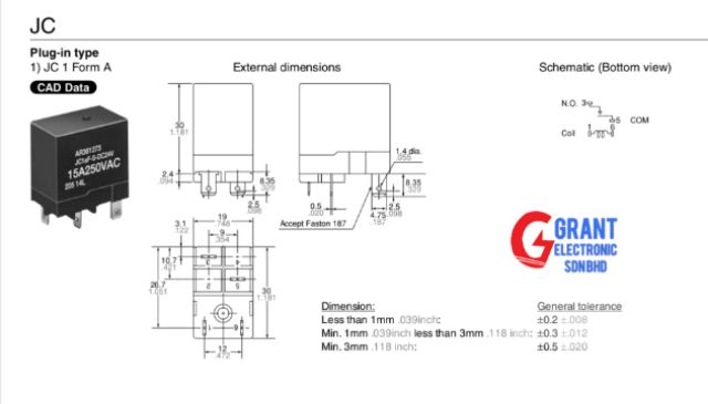 Relay MATSUSHITA JC1a-DC12V-TV SPST 1 NO 10A 250VAC COIL 12VDC 4pin Japan