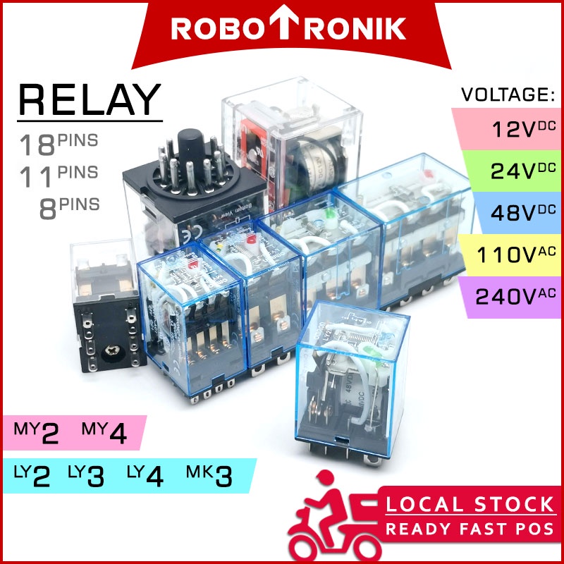 Relay MY2 MY3 MY4 LY2 LY3 LY4 MK2 MK3 (12V 24V 48V 110V 220V 240V) AC DC DPDT 4PDT Electromagnetic N-J Mechanical Coil