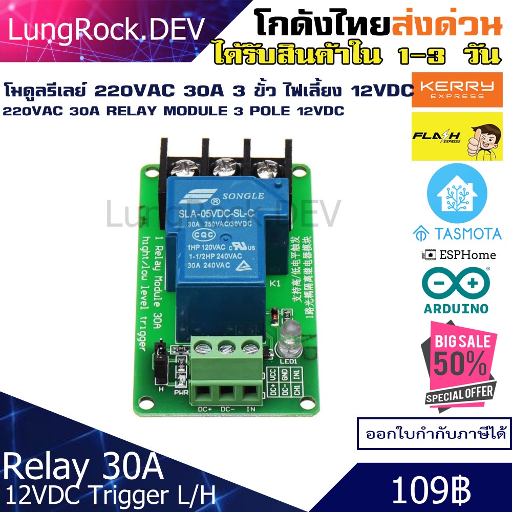 Relay Module 220VAC 30A Current Connector 30A Power Source Circuit 5/12/24VDC Operation Active Low/High For IOT